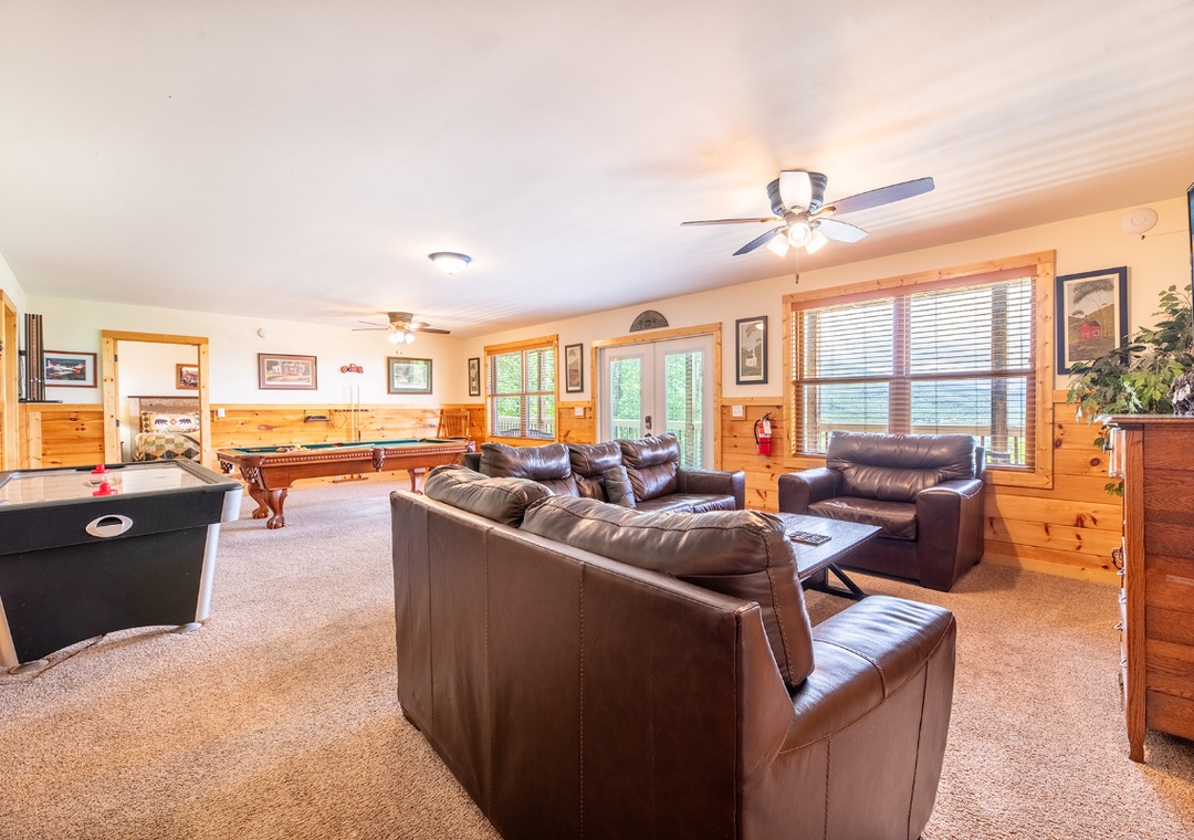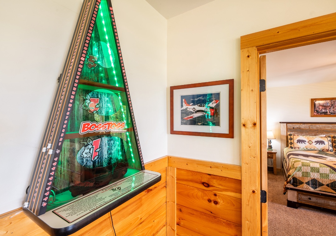 "Starry Night Retreat" is packed with features designed to keep everyone engaged from sunrise to well past sunset. In the game room, you’ll find a full-size pool table ready for hours of cue-to-cue challenges, a fast-paced air hockey table, and a bag toss game perfect for winding down with casual fun. There’s also a multicade loaded with dozens of classic titles that will transport you back to memory lane. Upstairs, the living room offers another inviting space to relax and unwind. Kick back on cozy seating and enjoy your favorite movies, shows, or sports on the 50" Smart TV. The upstairs back deck is an ideal gathering place for laughter, stories, and shared meals under the sky. Fire up the propane grill for a mountain-style cookout while others gather around the propane fire pit, roasting marshmallows or sipping drinks as the stars begin to twinkle overhead. For ultimate relaxation, head down to the main level deck, where a private hot tub invites you to melt your cares away. It’s the kind of relaxation that turns a good vacation into an unforgettable one.