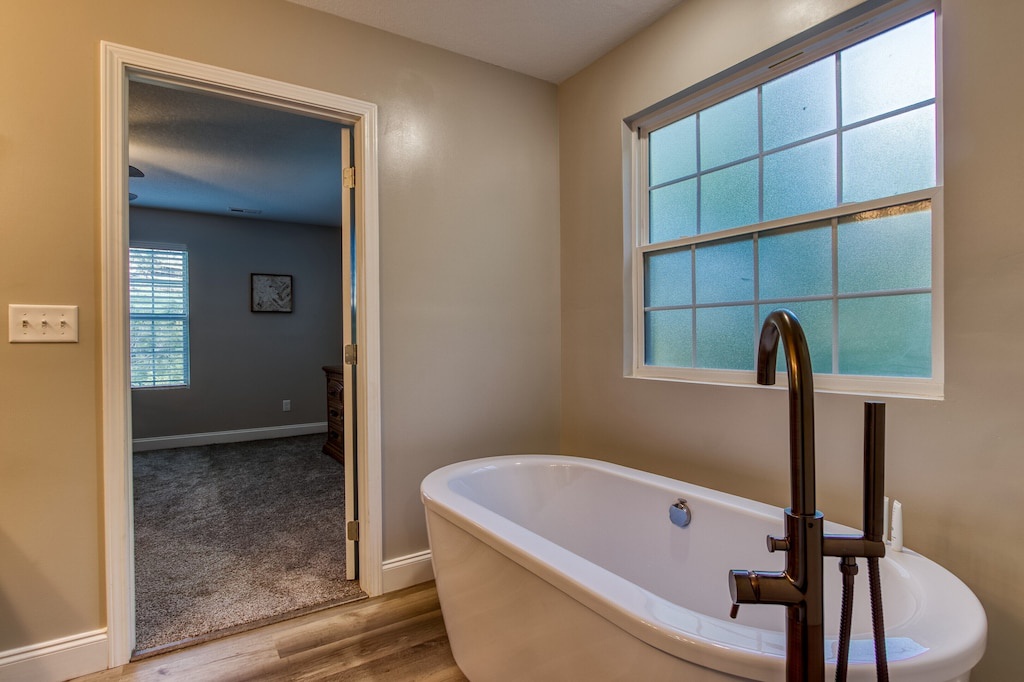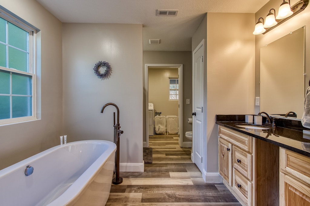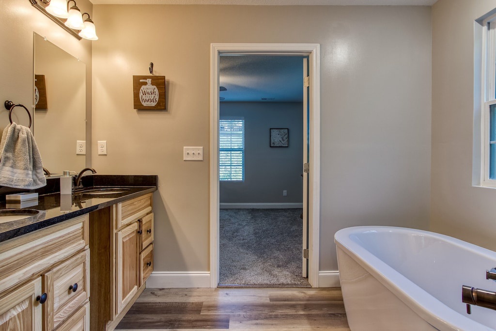Private Master Bathroom: Large Soaking Tub, separate shower, and double vanity