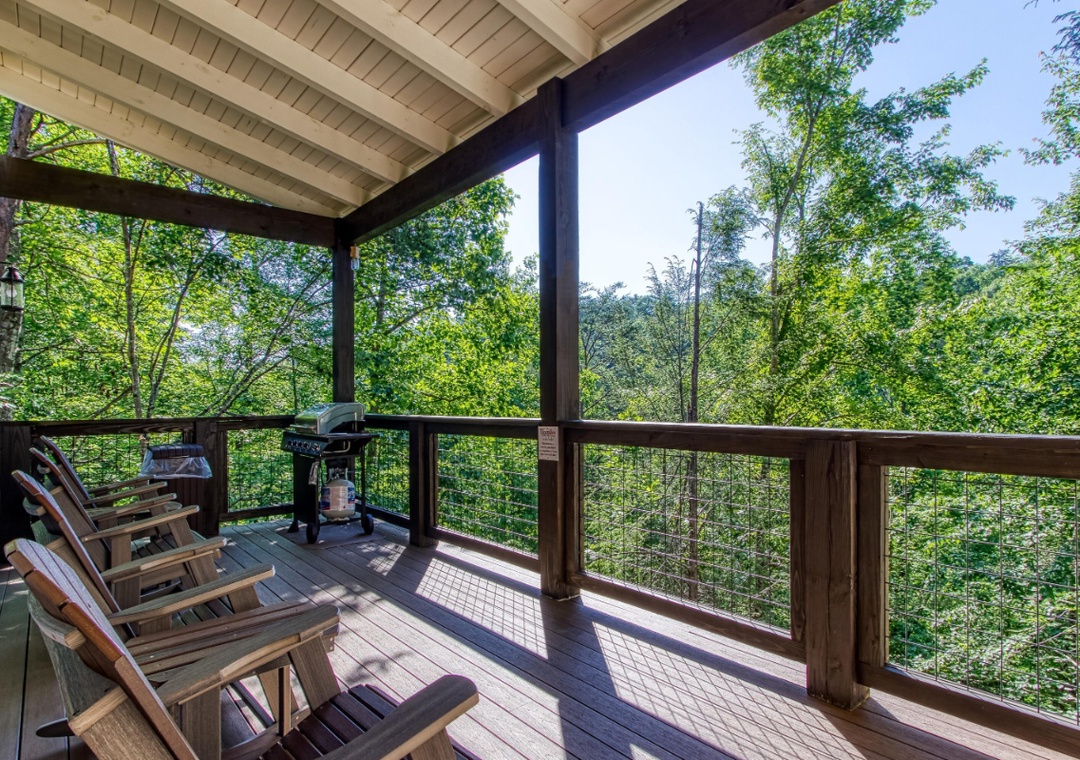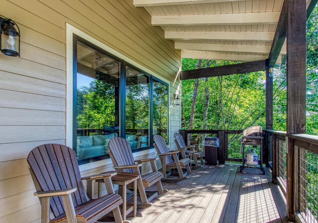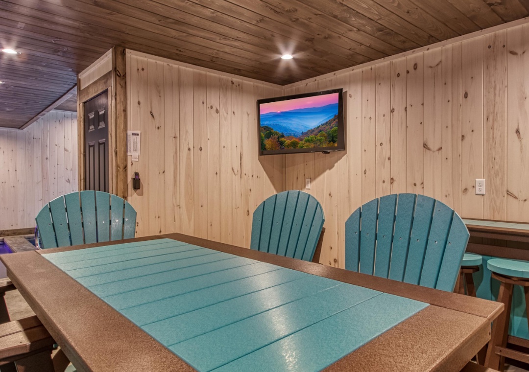 The game room on the lower level is a showstopper. Challenge your friends to a game of pool, where the competitive spirit comes alive with every shot. For those who love retro gaming, the classic arcade machine is for you, and for action lovers, the shooting arcade offers a unique and thrilling experience. When you’re ready to unwind after an intense game room session, head out to the lower-level back deck where a bubbling hot tub awaits. Relax your muscles while taking in the tranquil surroundings of the Smoky Mountains. Stonehouse Ridge offers something truly special: a private heated indoor pool located on the lower level. No matter the season, you can take a dip in the warmth of your very own pool. Families with young children will especially appreciate the adjoining kiddie pool, giving the little ones their own space to splash and play. If you're in the mood for outdoor grilling, head up to the main level back deck where a propane grill awaits. Cook up some delicious burgers, steaks, or veggies while taking in the relaxing wooded views. And if you’re visiting during the warmer months, you’ll also have access to a seasonal community pool which offers a great spot to enjoy the sunshine.