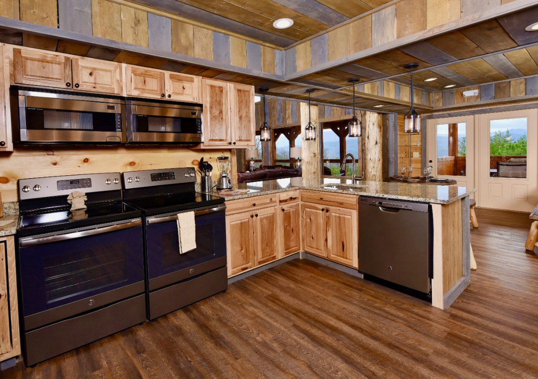 The fully-equipped kitchen boasts modern amenities, making it easy to prepare delicious meals for your family or friends. Well-appointed with a refrigerator, stove, microwave, and other kitchen appliances, perfect for making breakfast, lunch, or dinner throughout your stay! A convenient kitchenette is also available downstairs, perfect for grabbing a snack or preparing light meals while you’re playing games or enjoying movie time. All pots, pans, glasses, plates, silverware, etc., are also there for you! Gather around the inviting dining tables, the nearby breakfast bar, or take your meal outside on the back deck to share stories and laughter while basking in the breathtaking mountain views.