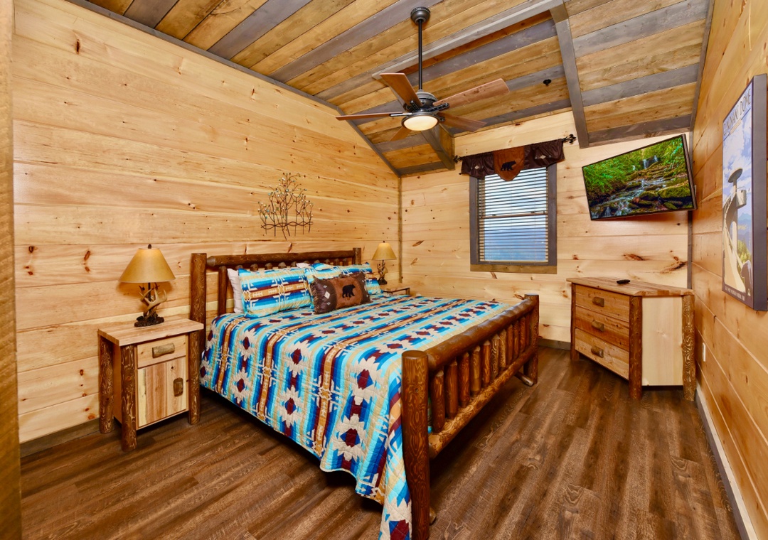 ✔ Clingmans Dome Room (Upper Level): Relaxing Bedroom with a King-Bed and Flatscreen TV; Attached Full Bathroom with Shower/Tub Combo
