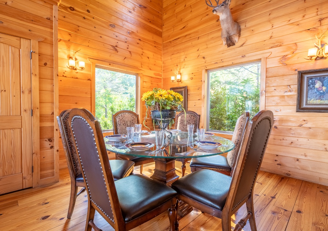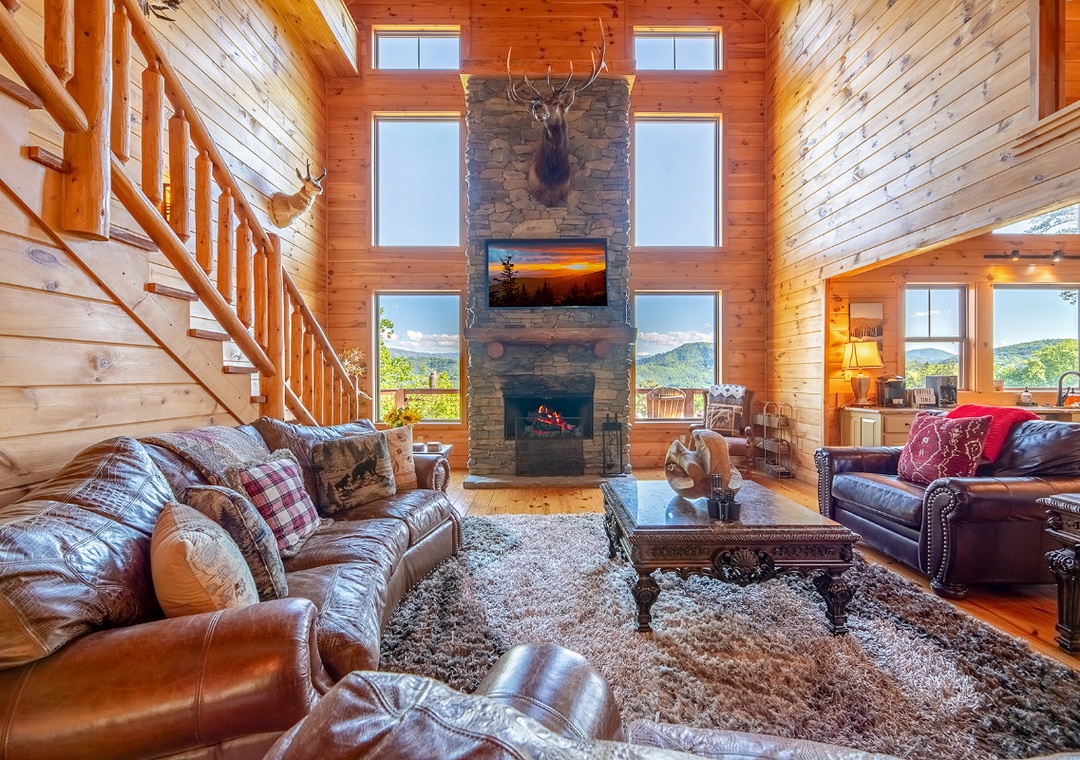 Our family of six had the most unforgettable time at the Sunflower Retreat! From the moment we walked in, we were blown away by the warmth and character of the cabin — soaring ceilings, rich wood finishes, cozy leather couches, and the perfect rustic charm. The large windows filled the space with natural light and gave us breathtaking, uninterrupted views of the mountains — it felt like we were living in a postcard.Every morning started with coffee on the deck, soaking in the peaceful mountain views, and every evening ended with relaxing in the hammock as the sun went down. The kids loved exploring the space and spotting all the unique touches — from the animal mounts to the cozy nooks for reading or just taking in the scenery.The kitchen was fully stocked and made cooking meals together a breeze. There was plenty of space for everyone to stretch out, play games, and truly unwind. Even in the July heat, the cabin stayed comfortable, and the mountain breeze made outdoor time feel perfect.The Sunflower Retreat is the kind of place that makes you slow down, breathe deeper, and truly reconnect as a family. We left feeling refreshed, grateful, and already planning our next stay.Highly recommend this cabin for anyone looking to relax, take in stunning views, and make lasting memories.- Reviewed On: 7/5/2025