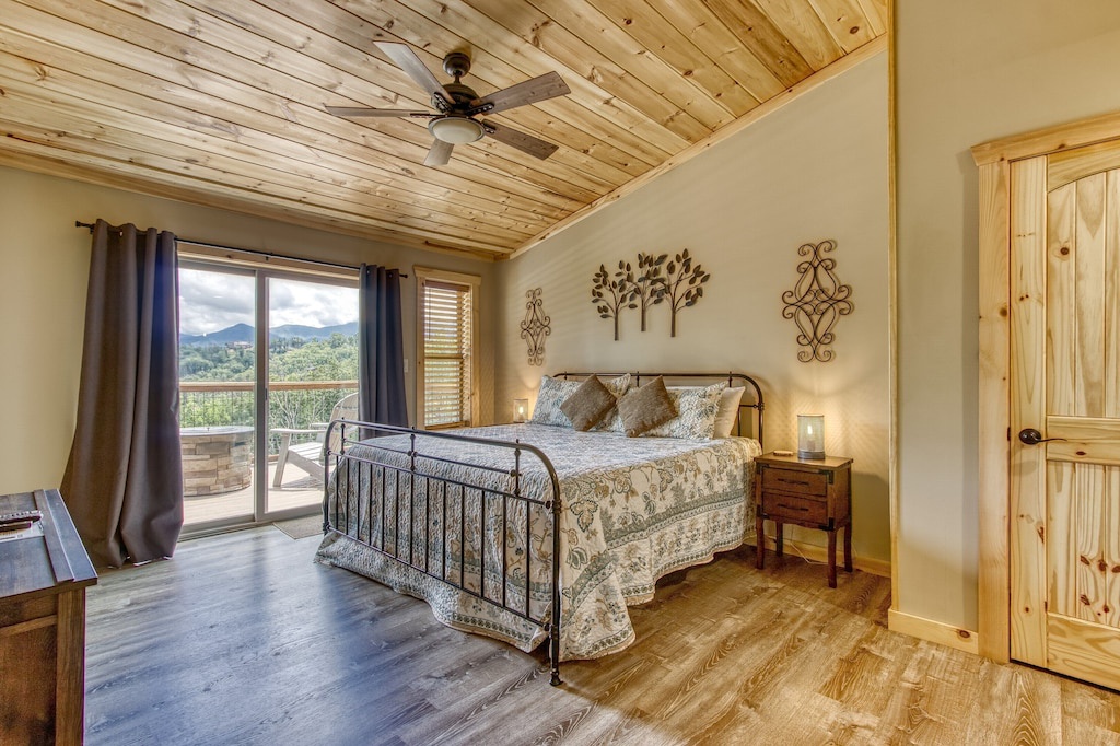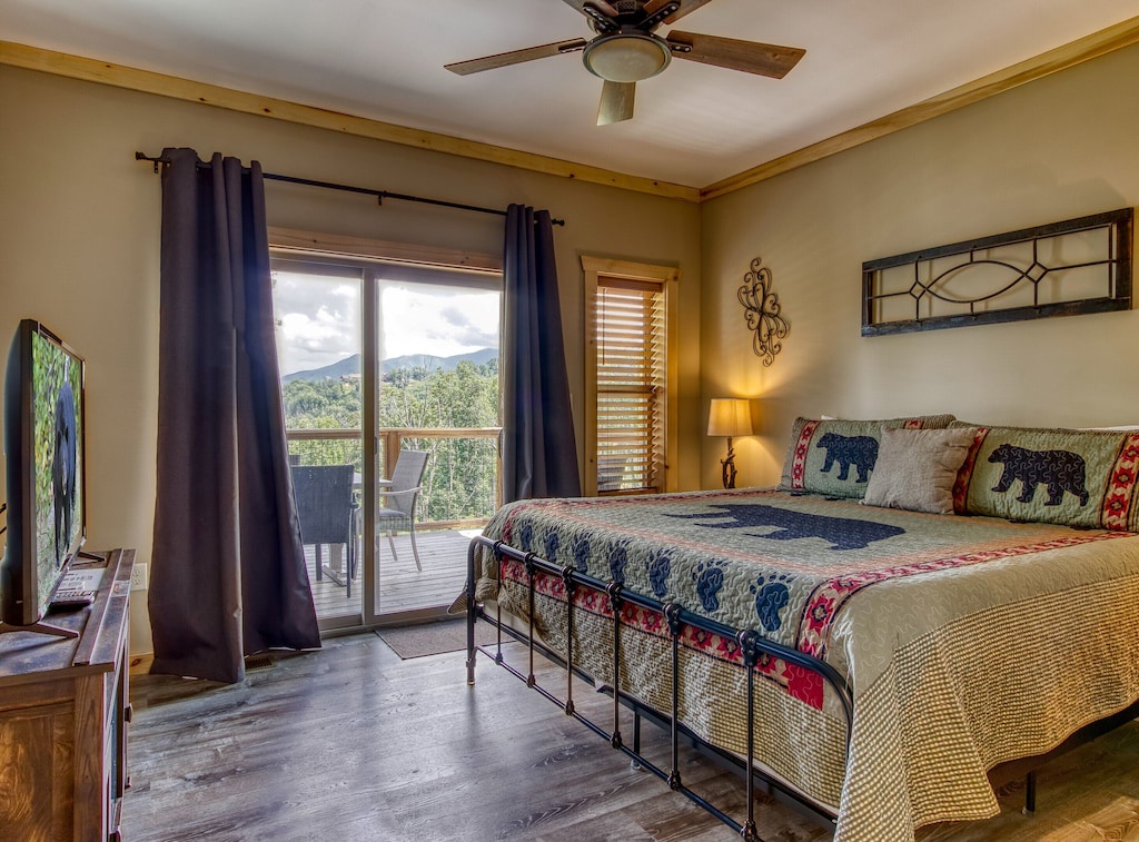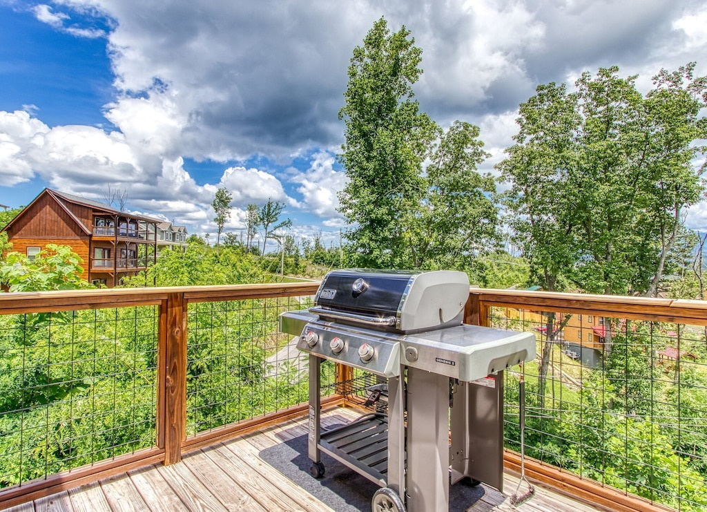 Nestled in the gorgeous Smokies, our spacious chalet provides you and your guests with serenity, convenience and a multitude of luxurious amenities that you deserve: cathedral ceilings, walls of windows, 3 levels of outdoor decks, a top deck for taking in the gorgeous views, outdoor dining area, gas BBQ grill, game room, shuffleboard and foosball tables, hot tub, karaoke machine, and a community pool, tennis courts and gym (open during the summer only).