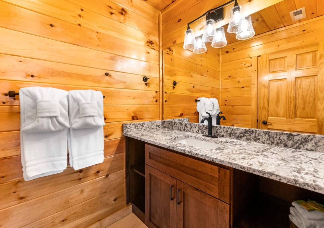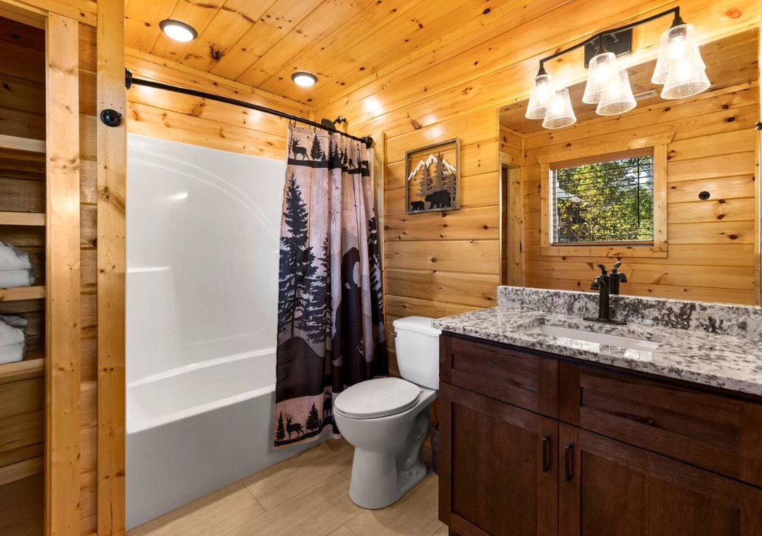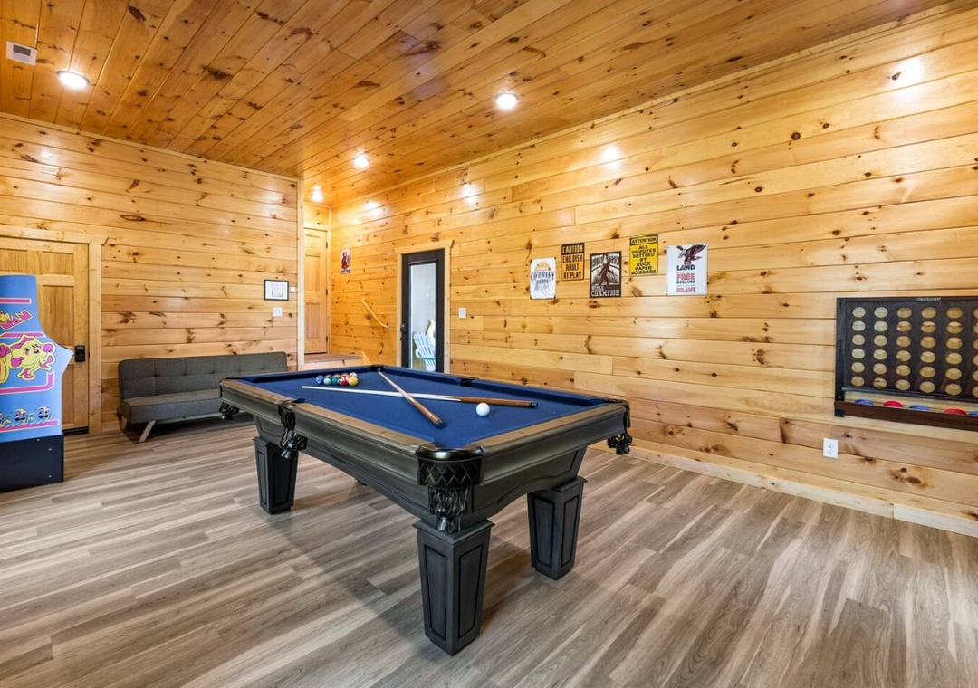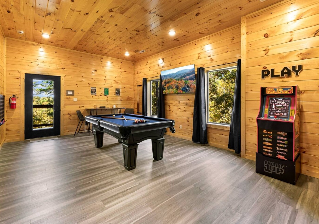 TVs are located in all bedrooms, the game room, family room and of course the theater room that boasts a 98” TV with an XBOX gaming system. The game room has a pool table, arcade game, and giant connect four. The private saltwater pool is heated year-round. You’ll love taking a swim then soaking in the hot tub after you’ve been shopping or hiking all day! We have the fastest plan offered by Xfinity for WiFi. This is a fantastic property that gives you easy access to the drive to Cades Cove as well as the Pigeon Forge attractions. Plus you have all of the amazing amenities to enjoy while in the cabin. Make your reservation then pack your swimsuit, hiking boots, and casual clothes for all the fun this cabin and area have to offer!