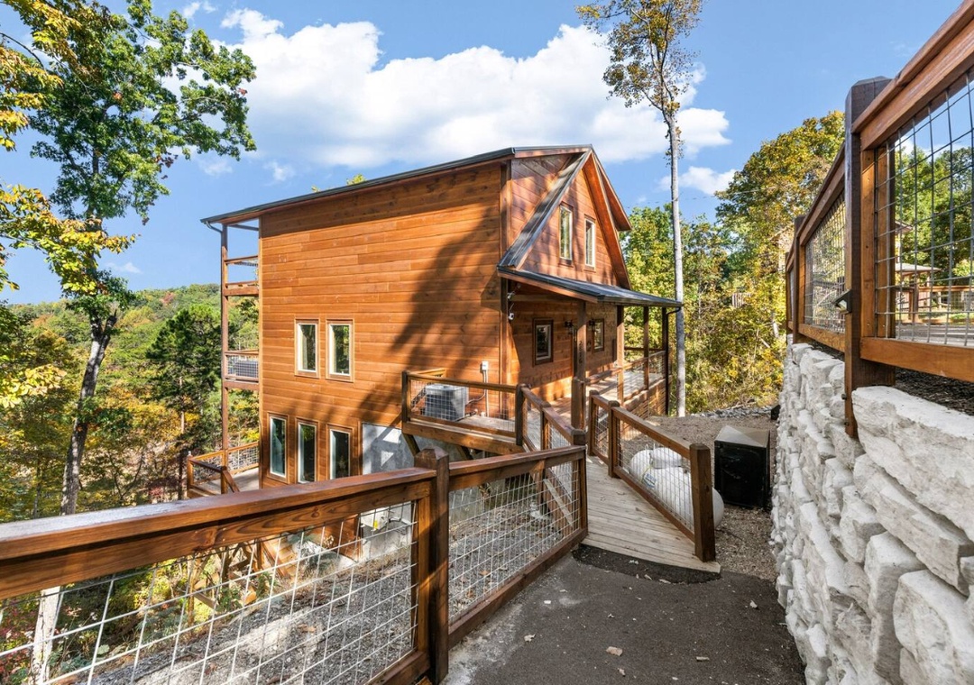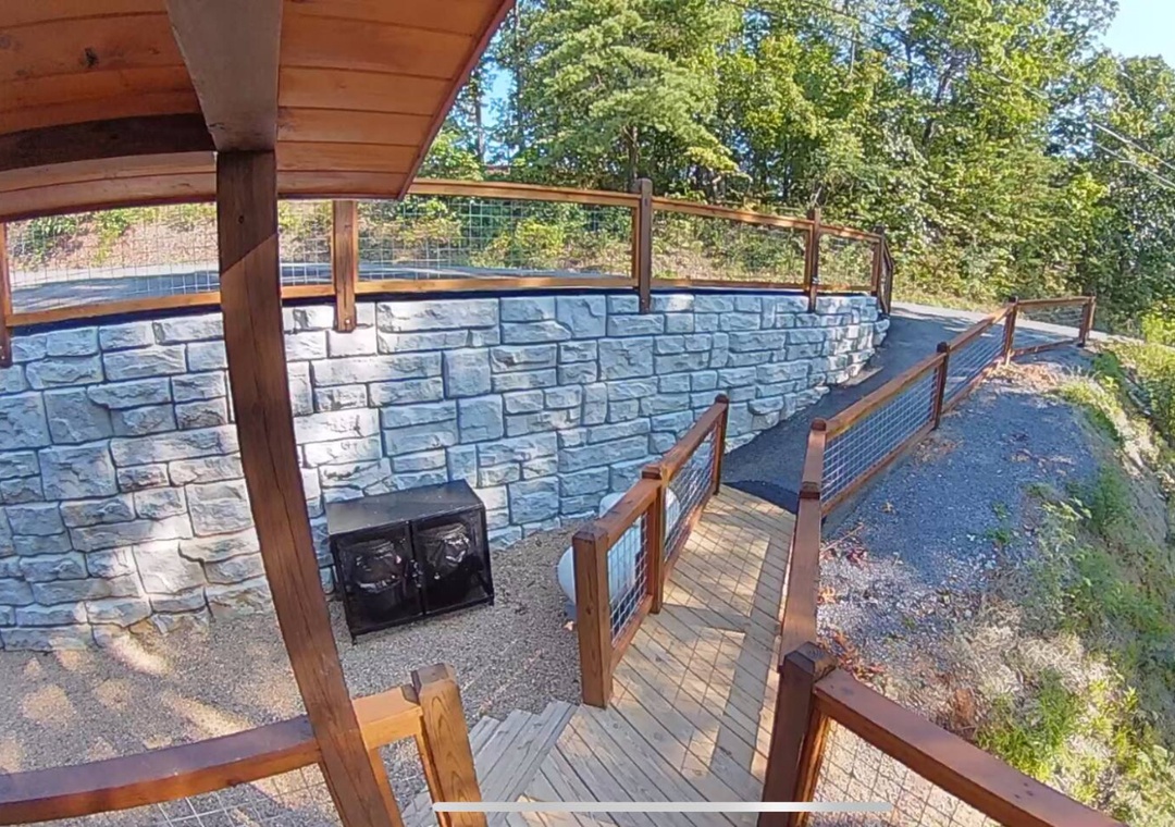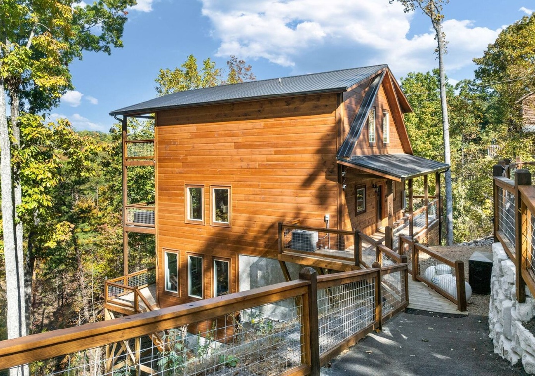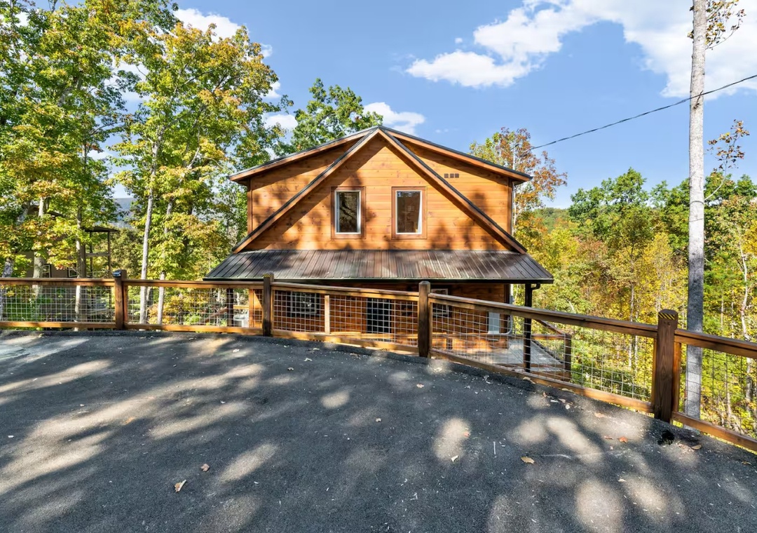Sunset Splash is located about 3 miles from the Parkway (the main strip in Pigeon Forge) and is only about 1 mile off of Wears Valley Road. The drive takes you along gently winding roads right to the level parking area in front of the cabin. We have parking that can accommodate a car trailer during rod week or up to 5 vehicles if needed. After you park, you enter the cabin via a sloped, lighted walkway, which has a handicap rail for those who may feel uneasy on the slope.
