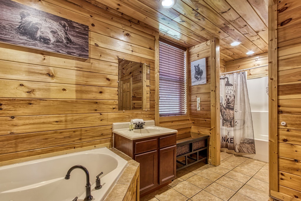 - Bedroom #1: King-sized bed w/ dresser and TV; Large jacuzzi tub in the bedroom! Attached bathroom with separate shower