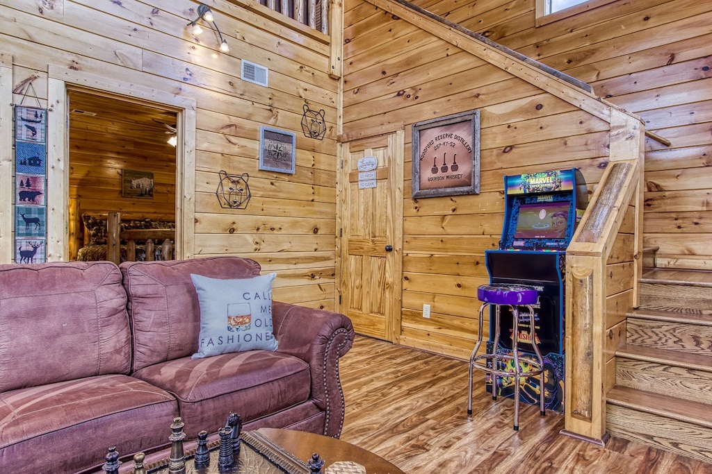 Stay with my family of 8 including my yorkie recently and loved everything about it. We had a late arrival and driving up to the cabin from South Carolina was questionable at first but I easily found the place right away using Apple Maps. Everything in the photo was exactly how it was in person. The beds we’re comfortable and my two kids slept on the bottom pull out sofa in front of the fire place. We loved playing with the pool table and the arcade game. We also used the hot tub for one night and the temperature was set perfectly fine in the cold weather. Location near this cabin was so good. We were close to all of our main attractions and restaurants. Definitely will book with Justin again in the future. His instructions was very informative and he was also so responsive when I had a question. Also loved the fact that he doesn’t charge an additional pet fee like most places. Highly recommend this place for families!- Reviewed On: 11/4/2023