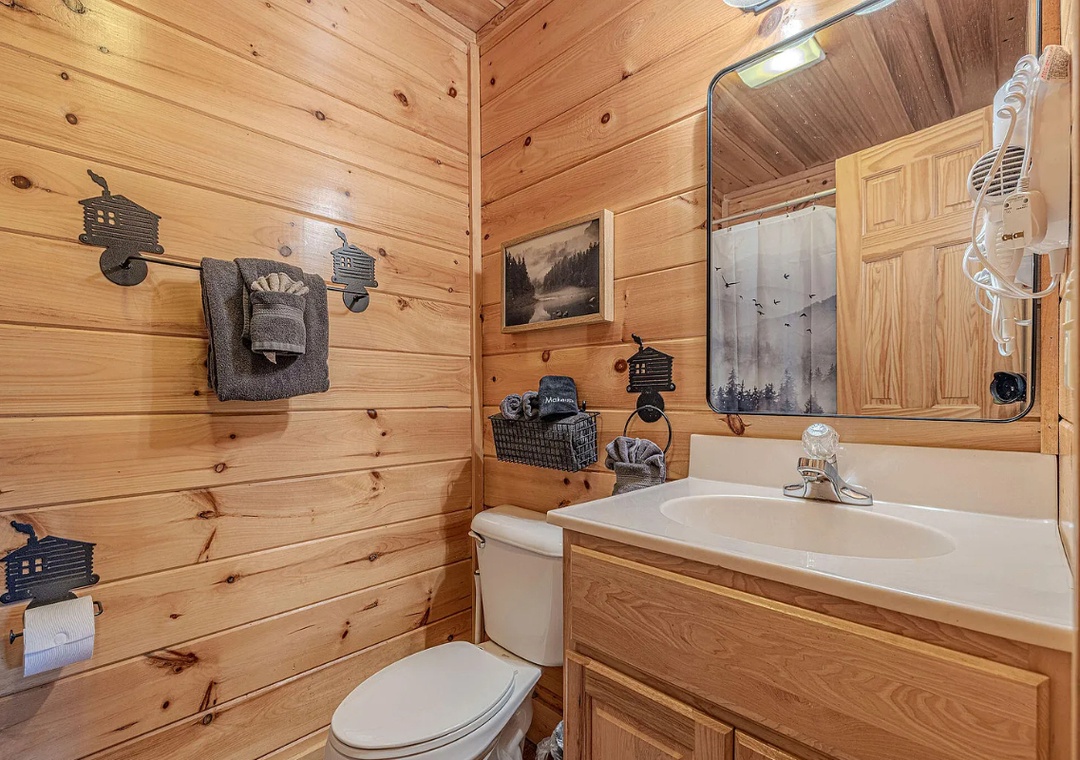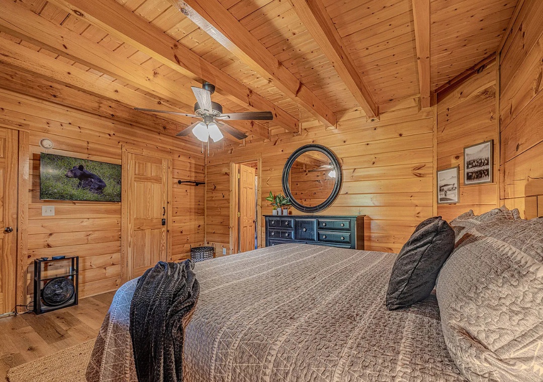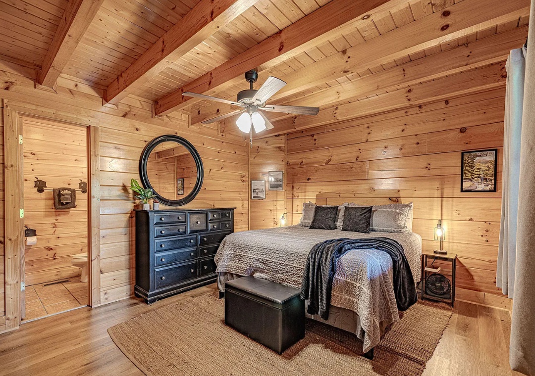 Both bedrooms are impressively spacious private retreats, each with its own full ensuite bath for the ultimate convenience and privacy. The rooms are thoughtfully arranged to give guests plenty of room to spread out and settle in, offering peaceful spaces to recharge after exploring the Smokies. In addition to the bedrooms, the enormous loft provides even more room to relax, play, or sleep, making the cabin a wonderful choice for families or groups seeking comfort without compromise.