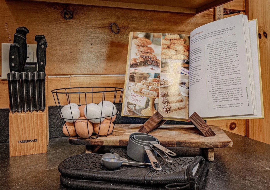 The fully equipped kitchen flows seamlessly into the living and dining areas, making meal prep simple and enjoyable. Whether you’re making a hearty breakfast before hitting the trails or grilling on the deck’s BBQ, the space is designed to support every type of stay. The open layout means you can cook, chat, and lounge all at once, keeping everyone connected throughout your visit.