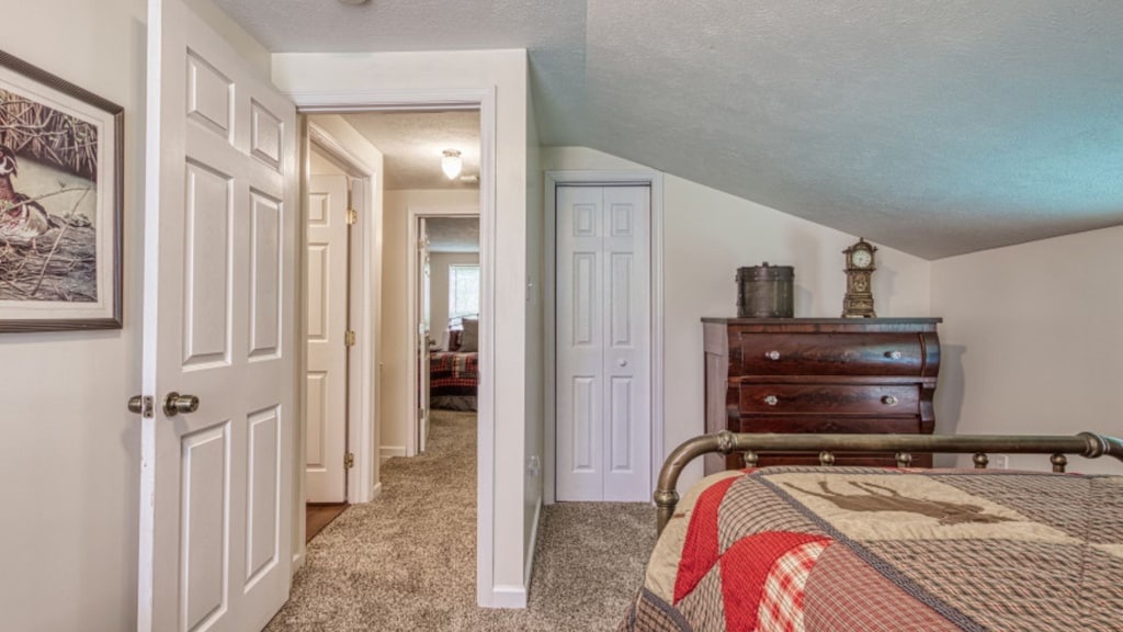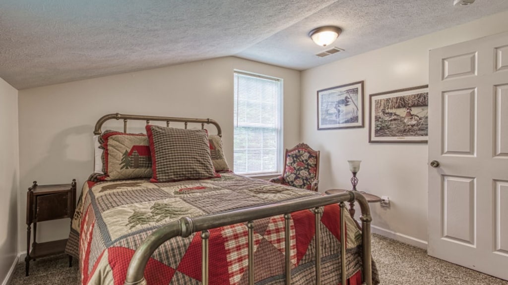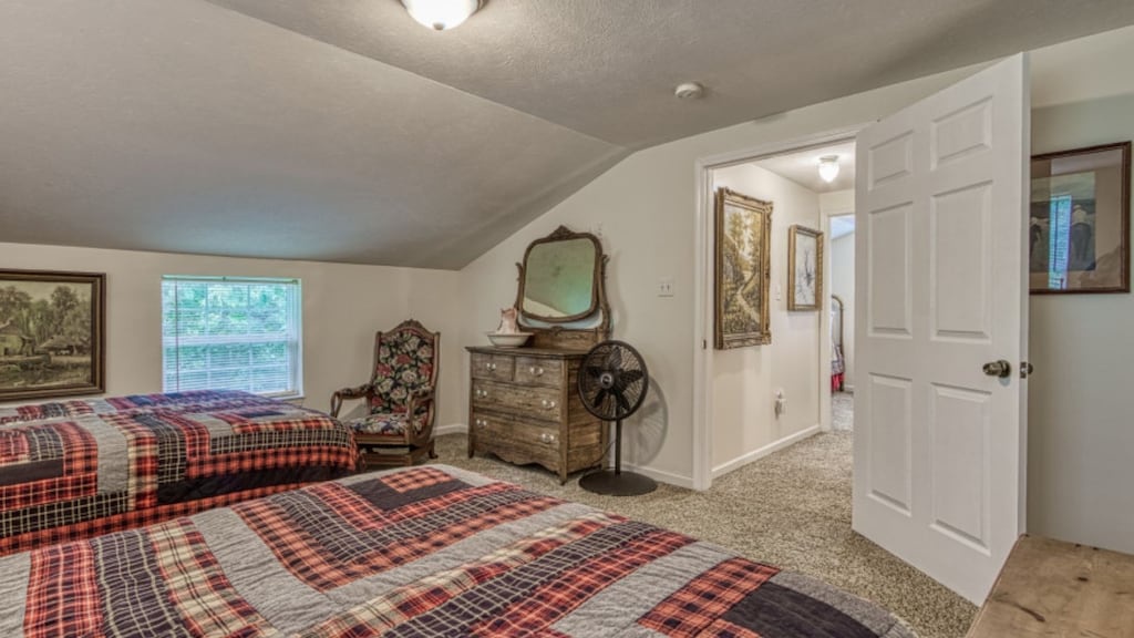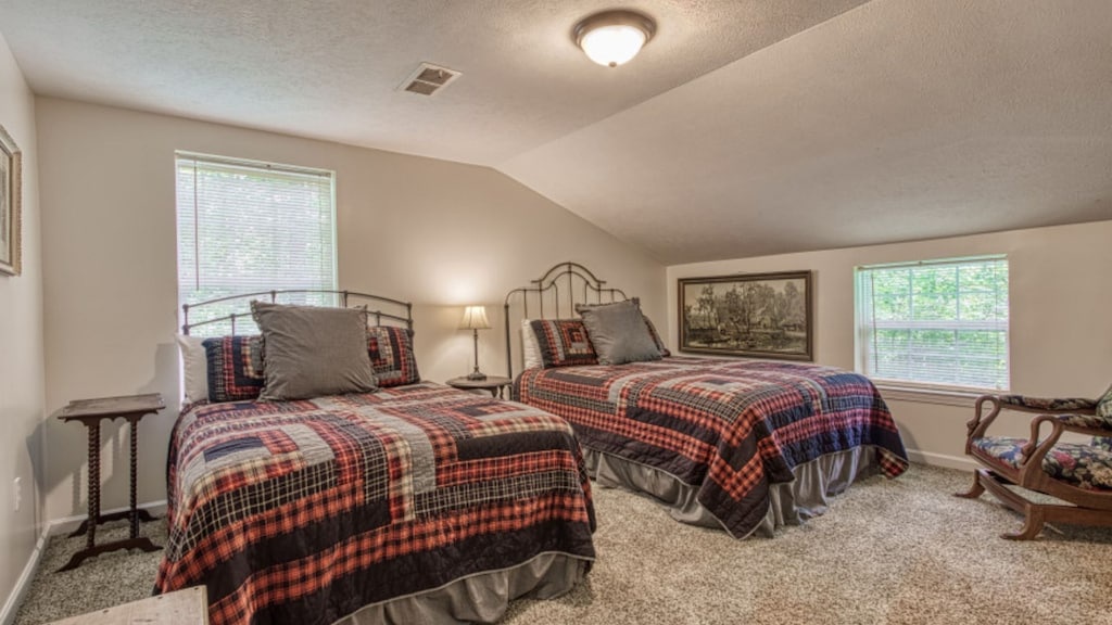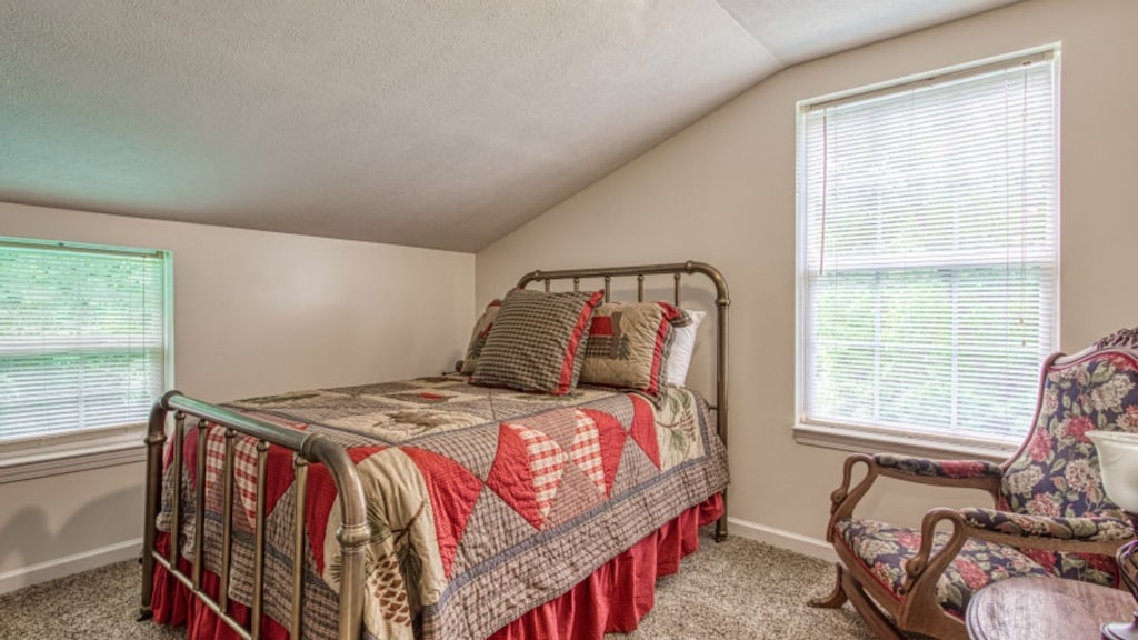 The main level of The Farmhouse includes one bedroom with a king bed with two additional bedrooms situated upstairs. The first bedroom on the top level has 2 full beds, and the second bedroom on the top level contains one queen bed. Each room has cozy bedding and comfortable beds to help ensure a restful night sleep.