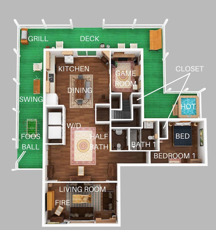 Hey Tisha! I'm so happy to hear that you had a blast at The Farmhouse! It's awesome that you enjoyed the arcade game and foosball table - those are always a good time. And relaxing in the hot tub and by the fire pit sounds like the perfect way to wind down. I'm glad I could help you out whenever you had questions. Thanks for coming and hopefully we'll see you again soon!Smoky Mountain Holiday staff