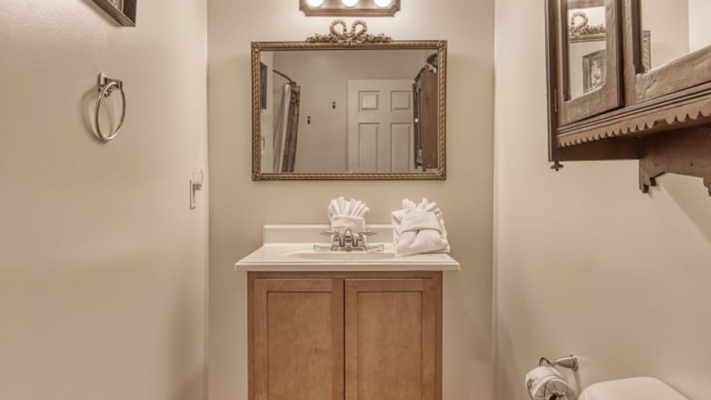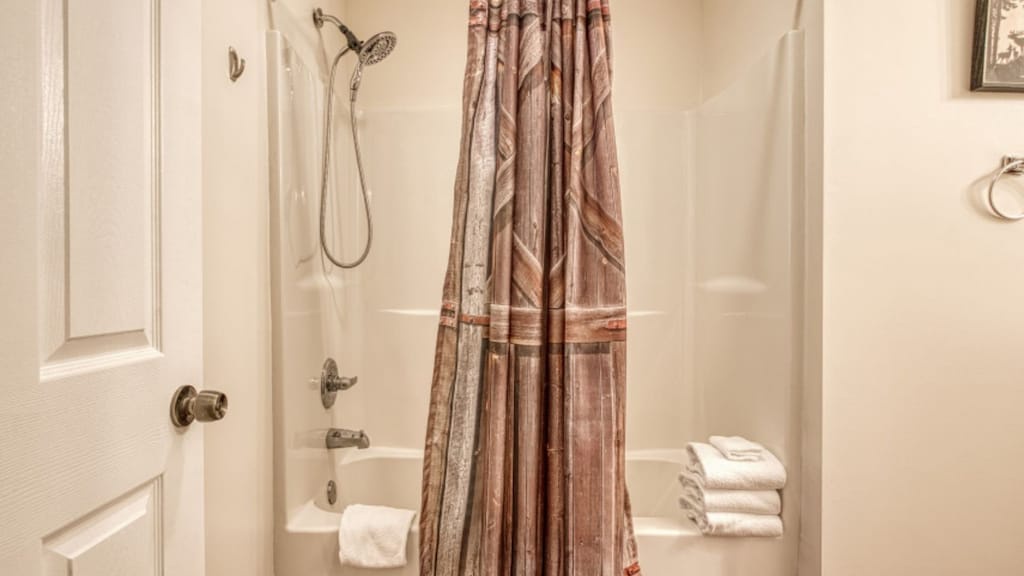 The Farmhouse has two full bathrooms, one on each level of the cabin, along with an additional half bath. You can pack light, because each bathroom contains towels and starter soaps, shampoos, toilet paper, and other bathroom essentials.