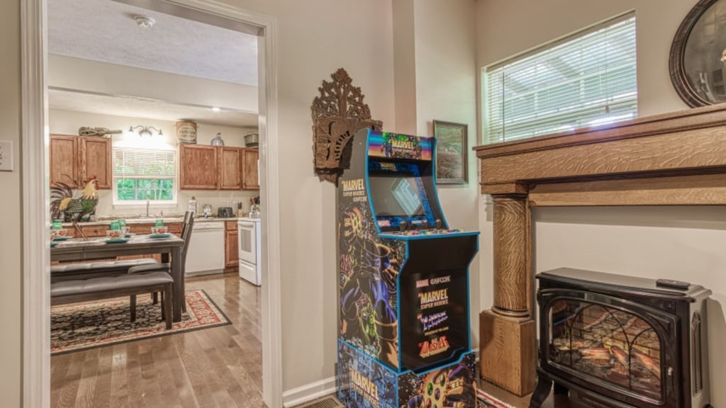 An arcade game is available in the cabin for endless hours of fun for adults and kids alike. If that begins to get boring (which is unlikely), more fun awaits you outdoors and at the nearby attractions! Enjoy your evening outside around the firepit or while grilling dinner outside -- or relax in rocking chairs with a hot cup of tea (or moonshine!). Theres even a hot tub to soak your worries away, all while you relax in the outdoors.
