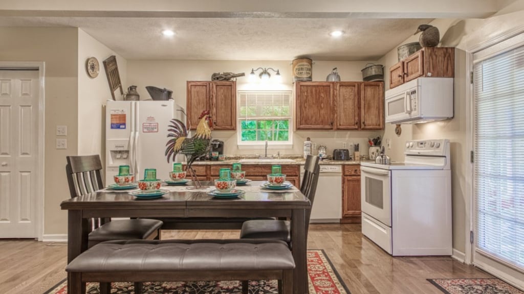 Meals are an important aspect of every vacation, and while the area offers a magnitude of restaurants for every culinary craving, if you never want to leave the house to eat, you certainly dont have to! The Farmhouse offers a fully-equipped kitchen complete with everything you need to prepare your own farm-to-table meal, including a standard size refrigerator, oven, stove, toaster, pots, pans, and cutleries. The dining area is situated right off the kitchen area, with seating large enough to gather and enjoy your meals comfortably.