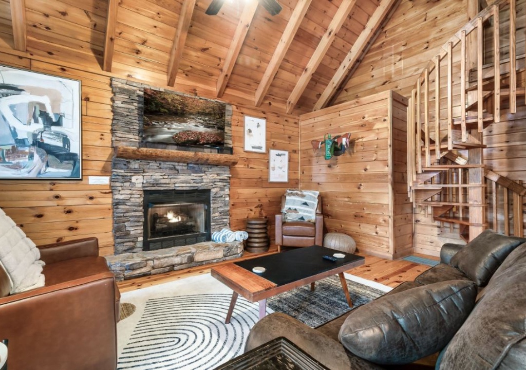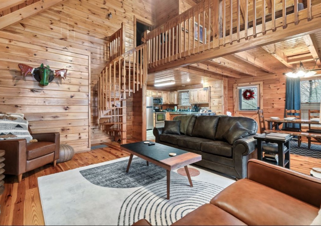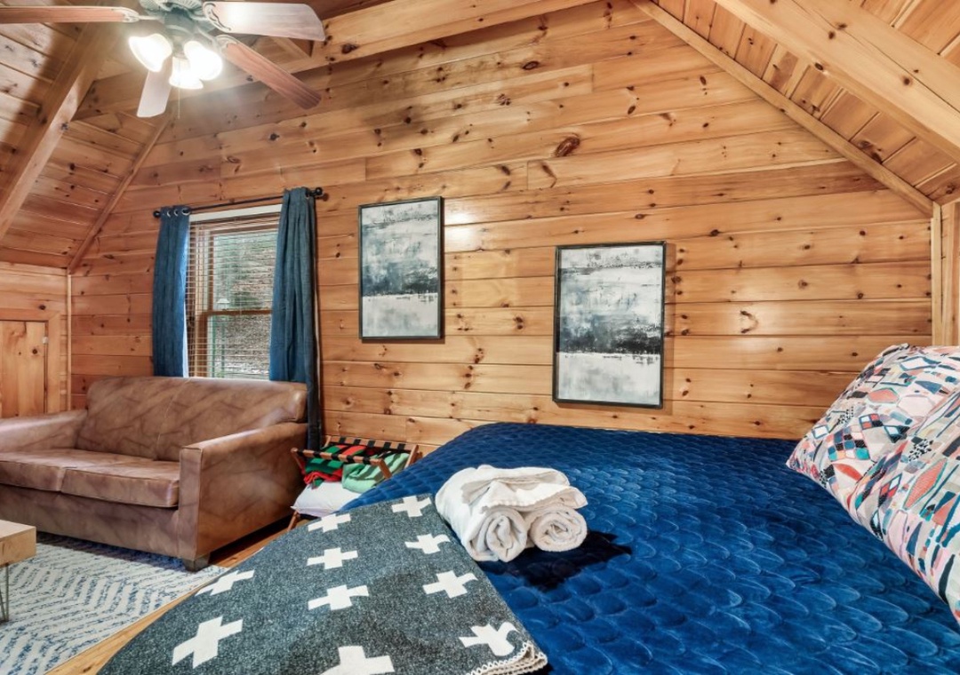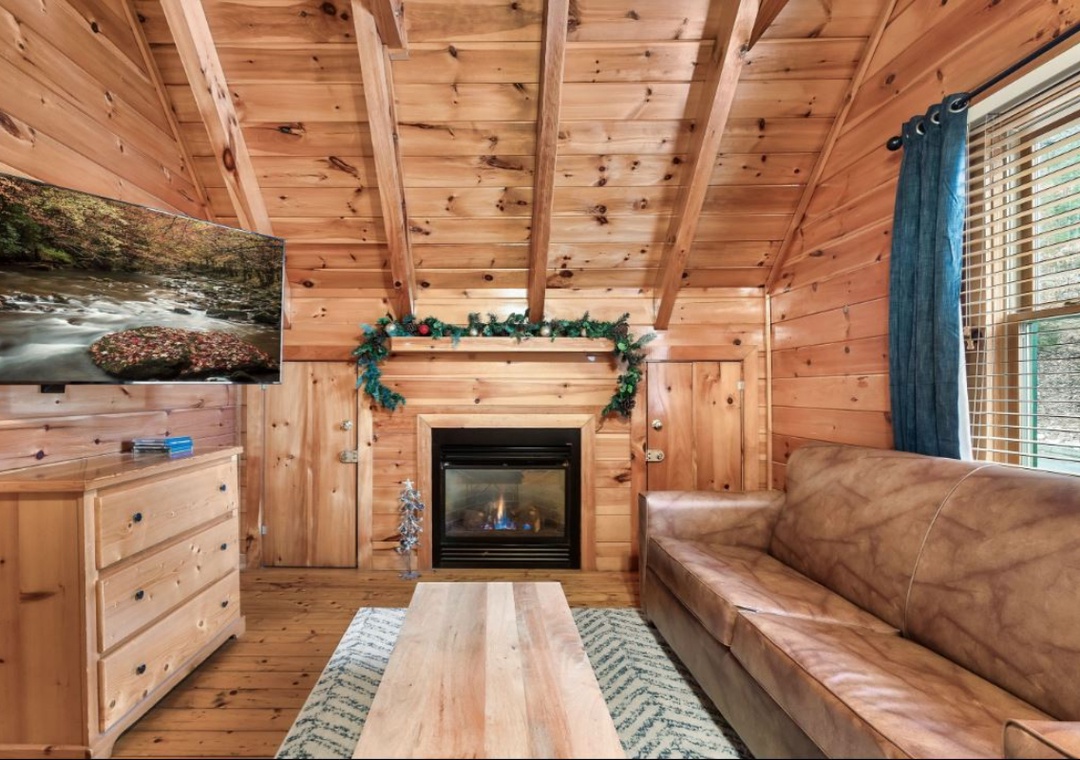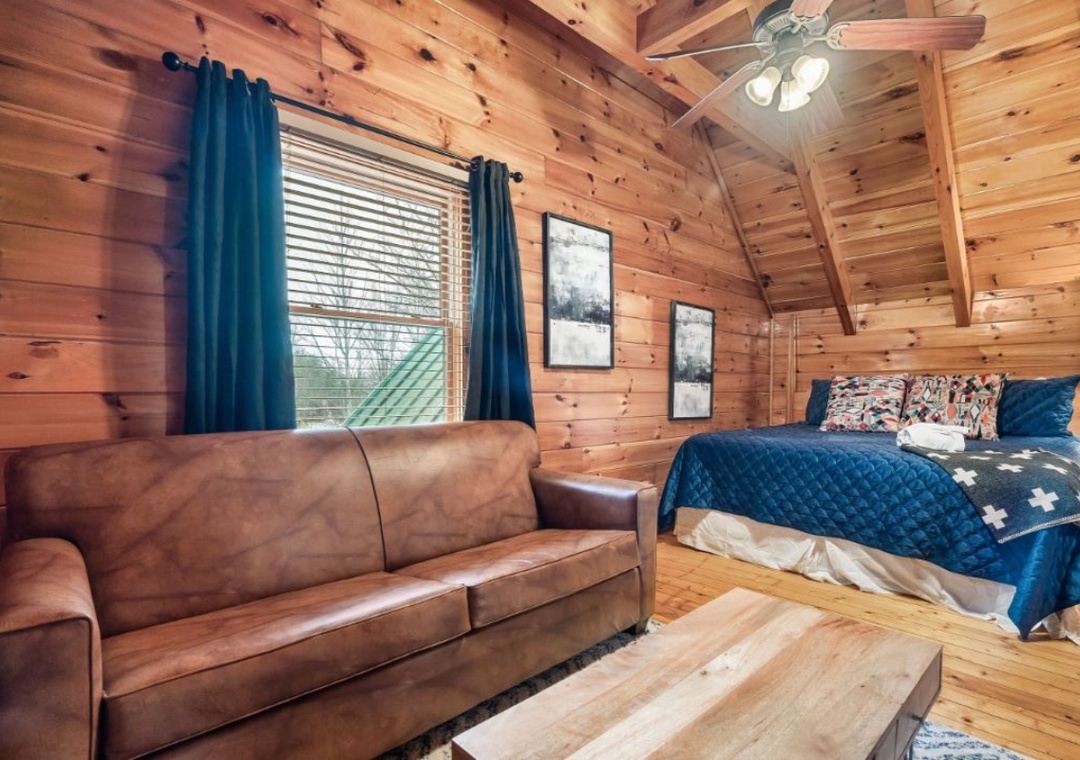 The living room boasts a Roku TV that gives you access to your favorite streaming services while a gas fireplace creates a soft, flickering glow that instantly transforms cool mountain evenings into something magical. The open floor plan allows the living room to flow naturally into the dining area and kitchen, making it easy for everyone to stay connected. Upstairs, the game loft adds an entirely different layer of indoor fun. It’s ideal for families, couples, or friends who want a little extra entertainment without ever leaving the cabin. Each of the two bedrooms offers a peaceful place to recharge. Designed for comfort and rest, they provide a quiet retreat after a day of exploring. Free WiFi is also available throughout the property.