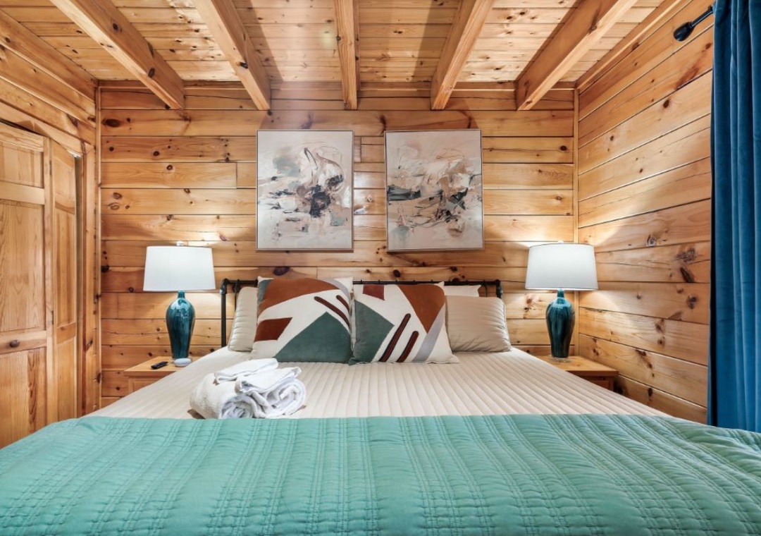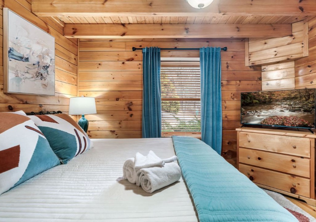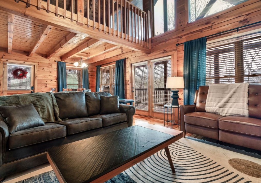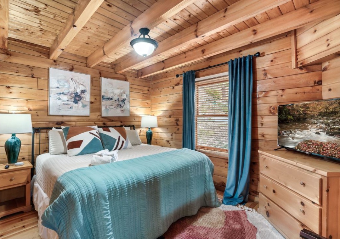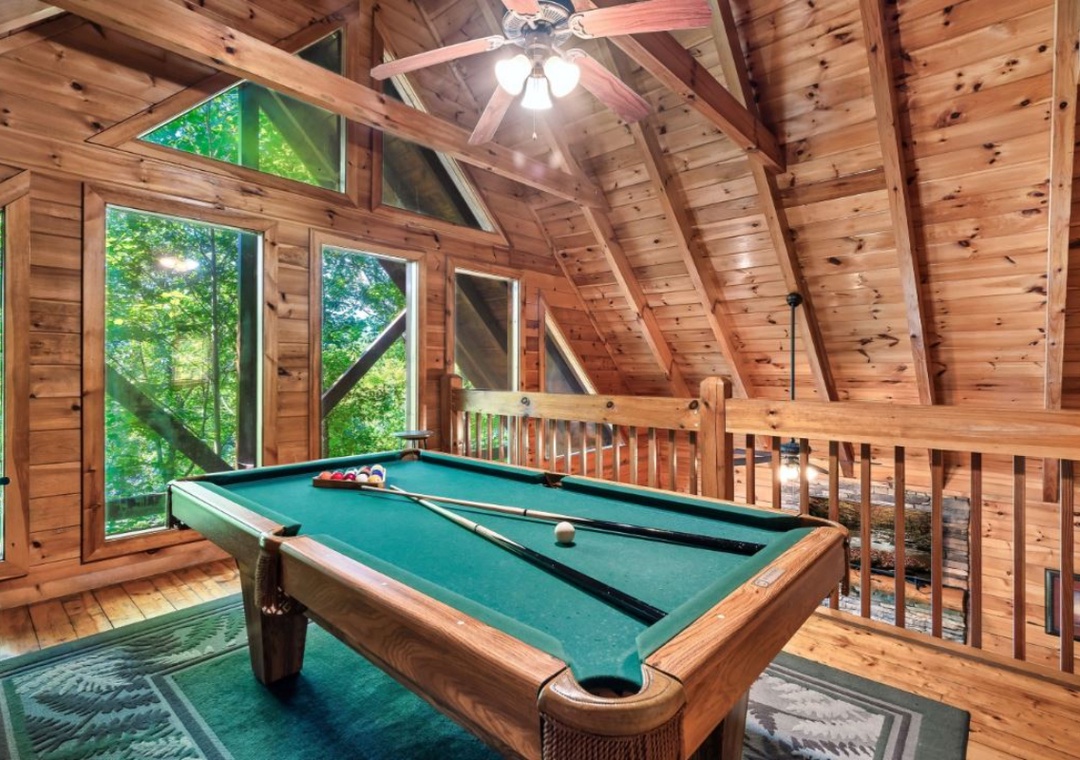 The living room boasts a Roku TV that gives you access to your favorite streaming services while a gas fireplace creates a soft, flickering glow that instantly transforms cool mountain evenings into something magical. The open floor plan allows the living room to flow naturally into the dining area and kitchen, making it easy for everyone to stay connected. Upstairs, the game loft adds an entirely different layer of indoor fun. It’s ideal for families, couples, or friends who want a little extra entertainment without ever leaving the cabin. Each of the two bedrooms offers a peaceful place to recharge. Designed for comfort and rest, they provide a quiet retreat after a day of exploring. Free WiFi is also available throughout the property.