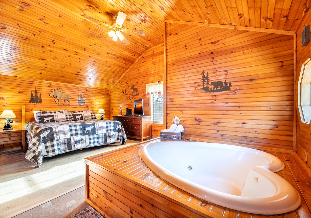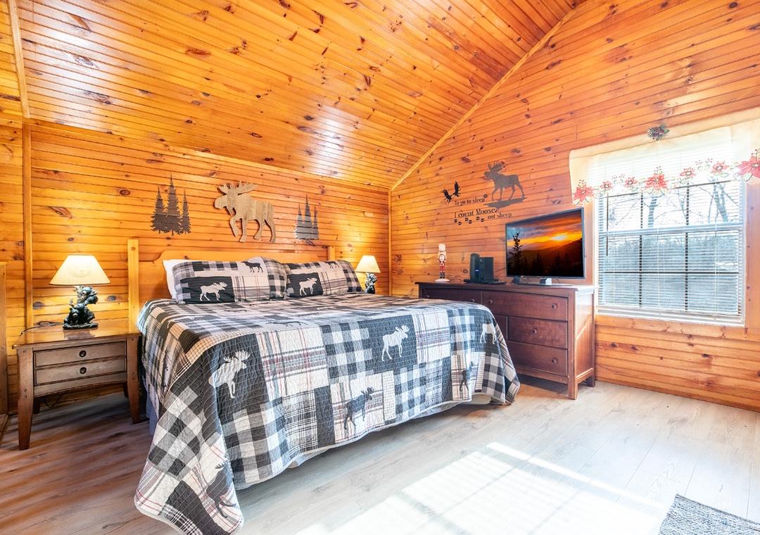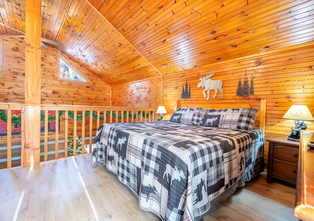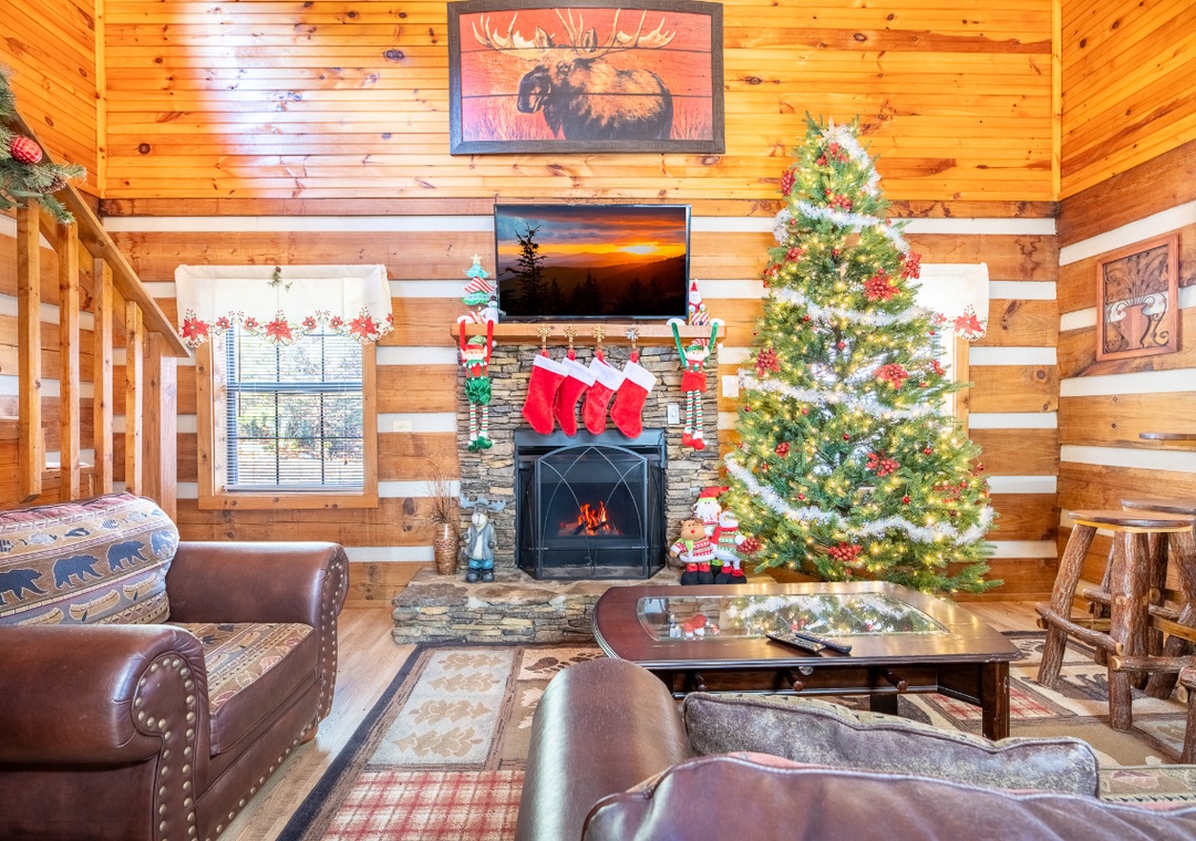 Welcome to "The Moose Den," where mountain charm, cozy comfort, and unforgettable Smoky Mountain adventures come together to create the perfect getaway. Our charming 1BD+Loft cabin (sleeps 4) offers an ideal setting for a romantic escape, an adventurous getaway, or to unwind and reconnect. ★Bubbling Hot Tub ★Cozy Living Area w/ Fireplace ★Jacuzzi Tub ★Foosball, Air Hockey, and Arcade ★BBQ Grill ★In-unit Washer and Dryer ★Relaxing Deck w/ Resort Views ★Close to TOWN!