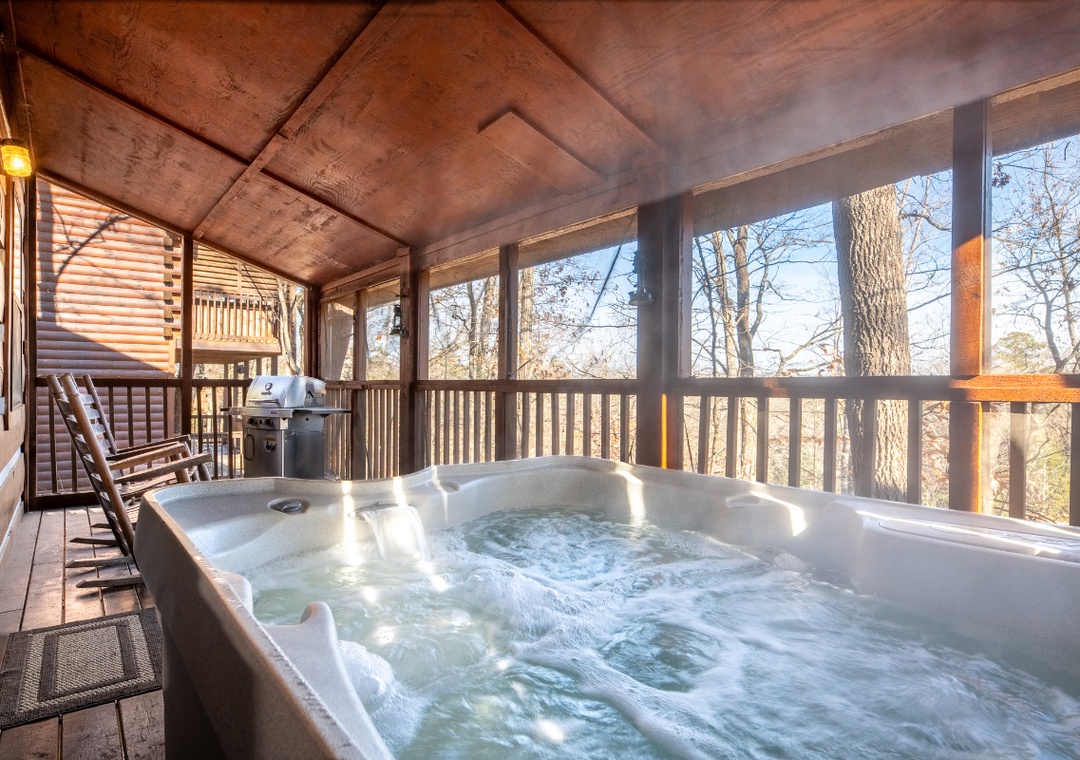 The Moose Den brings endless fun right to your doorstep with its dedicated game area, featuring a foosball table, an air hockey table, and a classic arcade setup that transports you back to the carefree joy of childhood. When you’re ready for fresh air, step onto the screened-in porch and slip into the inviting hot tub, where warm bubbles and cool mountain breezes create the ultimate relaxation experience. After your soak, enjoy the serene forest views or fire up the gas grill for an easy outdoor meal. With the cabin just minutes from the Parkway, you’re perfectly positioned to explore the best of the Smokies: hiking trails, local shops, scenic drives, live entertainment, and endless attractions all within easy reach. The Moose Den offers everything you need for a memorable and rejuvenating mountain escape.