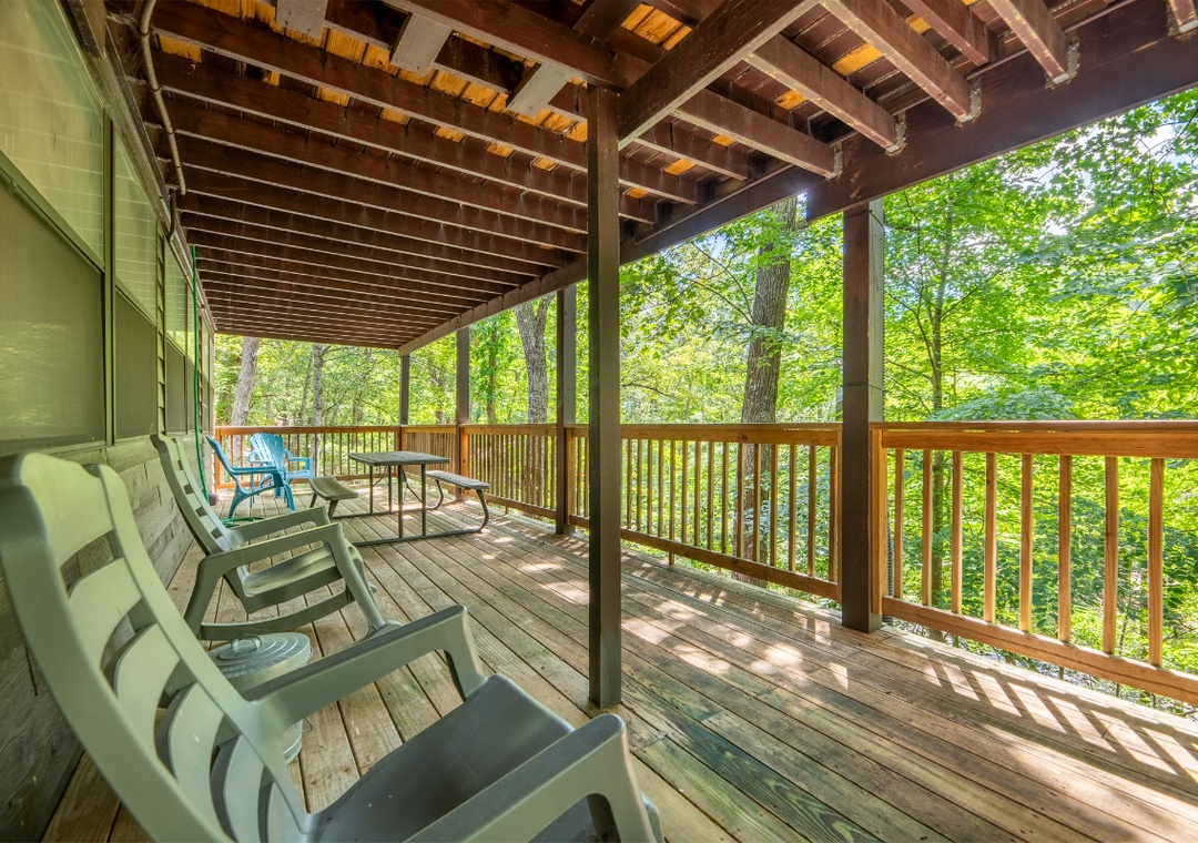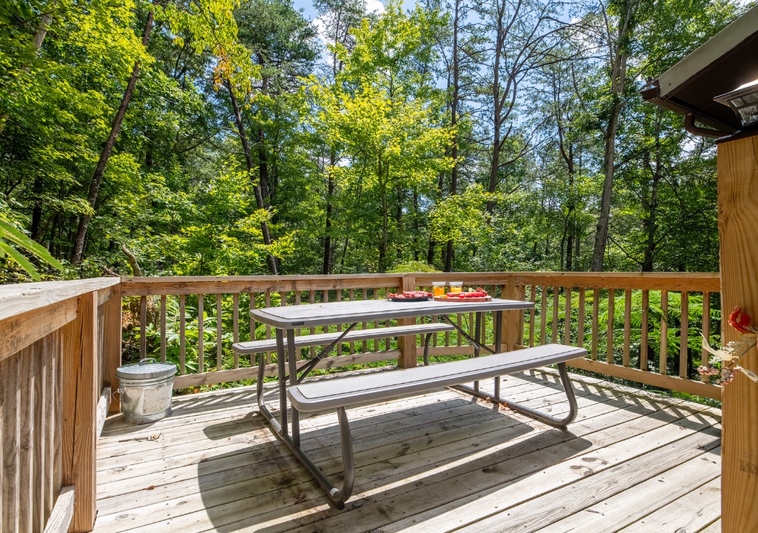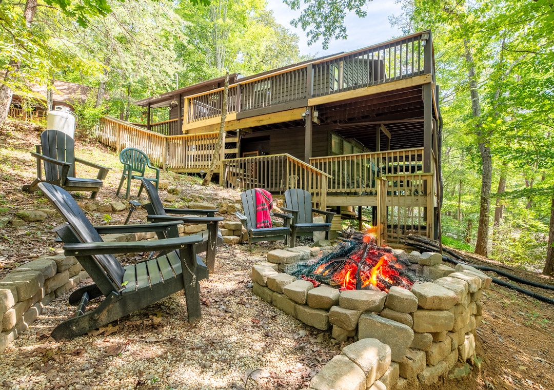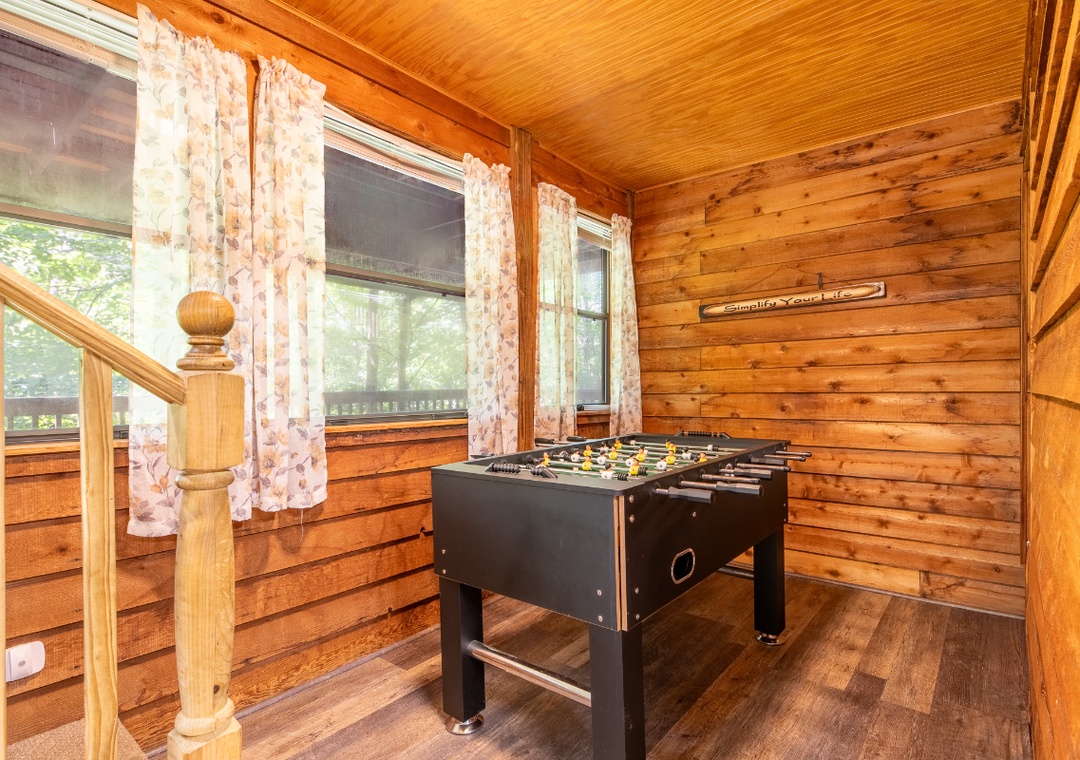 When it comes to entertainment, “The Mountain Dacha" truly shines. The lower-level game room is stocked with activities that appeal to everyone. Gather the family for a game of pool, challenge each other to a foosball tournament, or show off your skills on the multicade arcade machine. A 50” Smart TV and comfy seating area make this space perfect for movie nights or streaming your favorite shows, while the wet bar area makes it easy to keep snacks and drinks within reach during all the fun. Outside, “The Mountain Dacha” features expansive decking where you can breathe in fresh mountain air, enjoy wooded views, and unwind after busy days of exploring. On the back deck, the bubbling hot tub offers a soothing retreat, ideal for relaxing your muscles after hiking trails in the national park or a day spent exploring Dollywood. Off to the right side of the property, you’ll find a wood-burning fire pit that quickly becomes a favorite evening hangout. Roast marshmallows, share stories, or simply stargaze while the fire crackles. The lodge’s location also makes it a standout choice for families and groups who want convenience without sacrificing privacy. Just minutes away, you’ll find the Parkway, packed with scenic drives, hiking trails, dinner shows, shopping, and amusement rides.