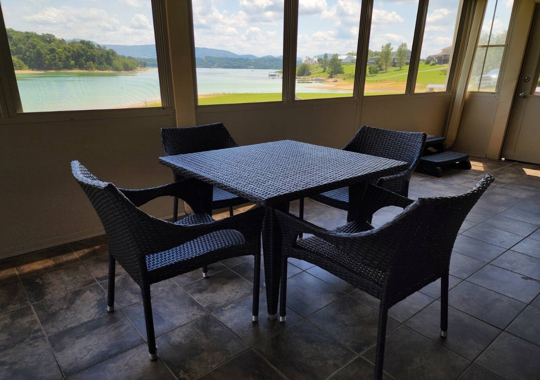 The heart of the home is the open-concept living space, where large windows flood the area with natural light and provide stunning views of the surrounding mountains and lake. The living room is designed for both comfort and togetherness, with plush seating that invites you to sink in and unwind after a long day of adventure. The kitchen is a chef’s dream, boasting ample counter space, a large island with granite countertops, and elegant tiled floors that add a touch of sophistication. Downstairs, find the game room which features an Air Hockey table, a Foosball table, and plenty of space to challenge friends and family to a little friendly competition. Adjacent to this space is a screened in porch with comfy seating that will take relaxation to the next level. Free WiFi is also available throughout the property.