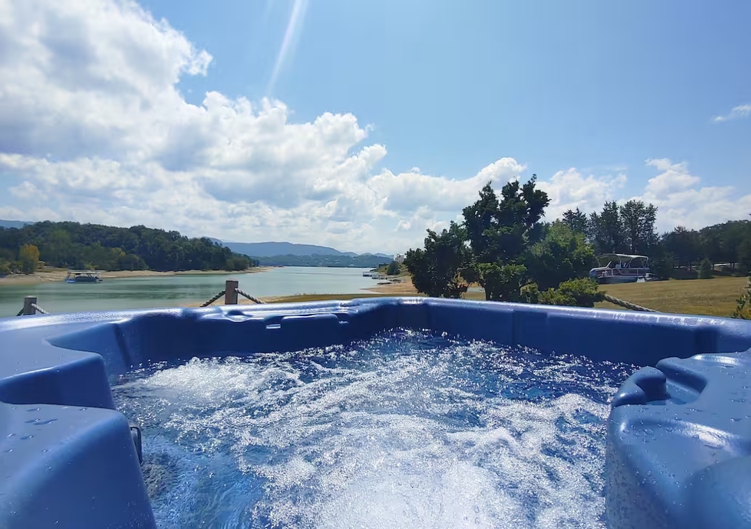 Start in the game room where you can challenge your friends and family to an exciting match of Air Hockey, or take on a game of Foosball for a friendly rivalry. The spacious game room is designed for nonstop fun, making it the perfect spot to spend rainy days or late nights with the whole group. Step outside, and the fun continues with a wide array of outdoor activities. Just beyond the back deck, a friendly game of Cornhole awaits in the yard—perfect for casual competition while enjoying the fresh mountain air, or fire up the propane grill on the lower-level deck and host a lakeside cookout. For water lovers, Three Horizons Retreat offers direct access to Douglas Lake with a private floating dock and boat slip. After an action-packed day, rinse off in the outdoor shower before heading to the ultimate relaxation spot—the bubbling hot tub—perfect way to unwind under a canopy of stars. Let the warm water soothe your muscles as you recount the day's adventures or simply enjoy the peace and quiet of the mountain night.