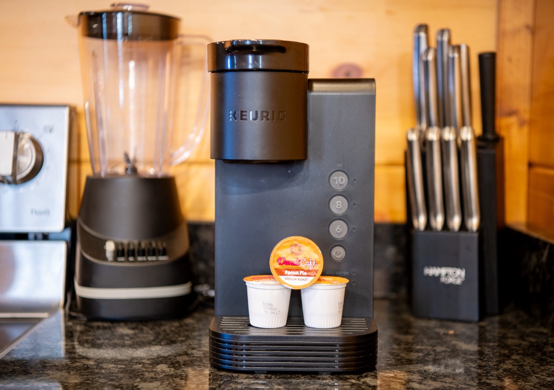 The kitchen is a chef’s dream, designed with both function and style in mind. Complete with a full-sized refrigerator, stove, microwave, and other kitchen appliances perfect for making breakfast, lunch, or dinner throughout your stay! All pots, pans, glasses, plates, silverware, etc. are also there for you! A wooden dining table creates an inviting atmosphere, encouraging everyone to linger over meals and share stories.