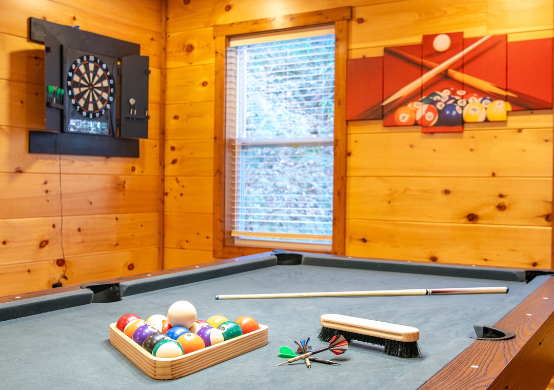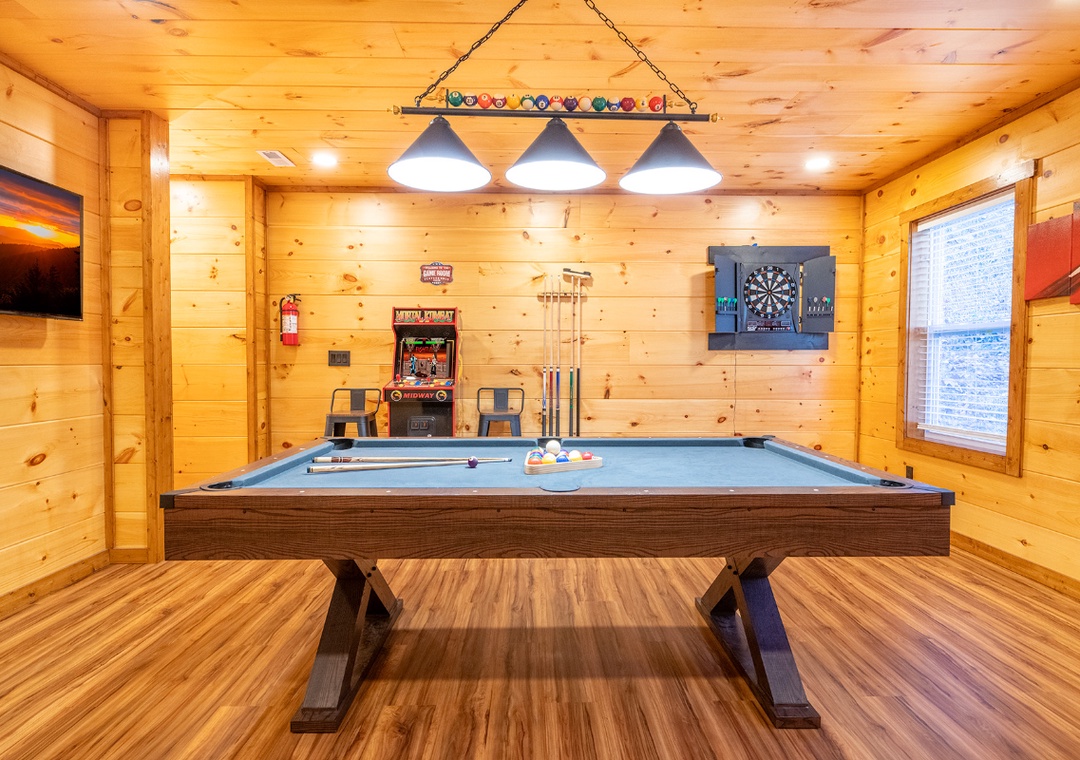 ✔ Game Room with Pool Table, Arcade, and Darts