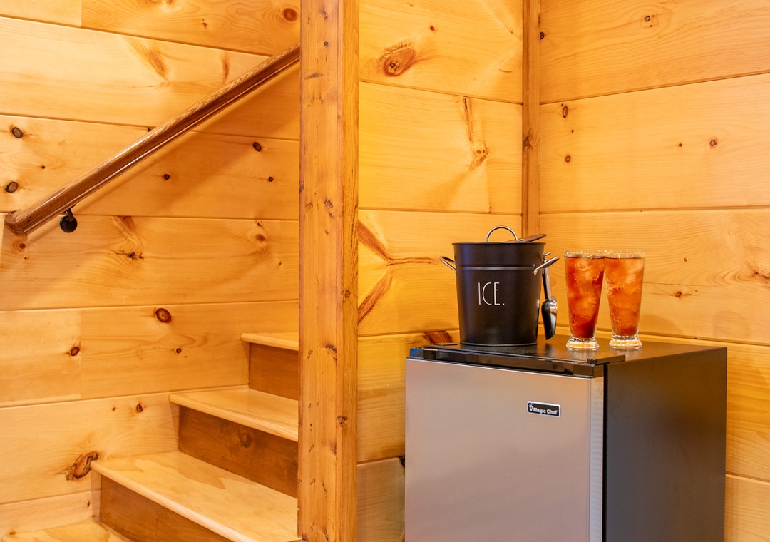 On the second floor, you’ll find a game room that’s the ultimate spot for friendly competition and fun. Enjoy a pool table where you can brush up on your skills or go head-to-head in classic games. The arcade machine adds a nostalgic touch and provides hours of entertainment, especially for gamers in the group. This space is complete with a bar, allowing you to mix drinks and kick back in style while others play—creating a social atmosphere perfect for any group. Our lodge also features two fire pits for your enjoyment. One is located outdoors, nestled under the stars and the second one is set conveniently on the deck, where you can enjoy a cozy fire with the added privacy and warmth of being closer to the cabin. The private hot tub offers yet another way to relax while surrounded by nature. You'll also have access to a seasonal community pool perfect for cooling off during warm summer days or simply lounging poolside with a good book.