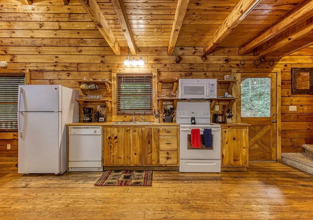 As you enter, you're greeted by the warmth of the wood-paneled walls and the inviting ambiance of the living area. Sink into plush sofas, perfect for lounging after a day of exploration. Each bedroom boasts its own TV, offering personal sanctuaries for relaxation. Head to the game room where a gleaming pool table awaits. Unwind with friends or family in the lounge area, sharing stories and laughter late into the evening. Prepare delicious meals in the fully furnished kitchen, equipped with modern appliances and ample counter space for culinary adventures. Whether you're whipping up a hearty breakfast or a gourmet dinner, this kitchen is sure to inspire your inner chef.