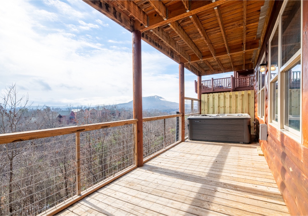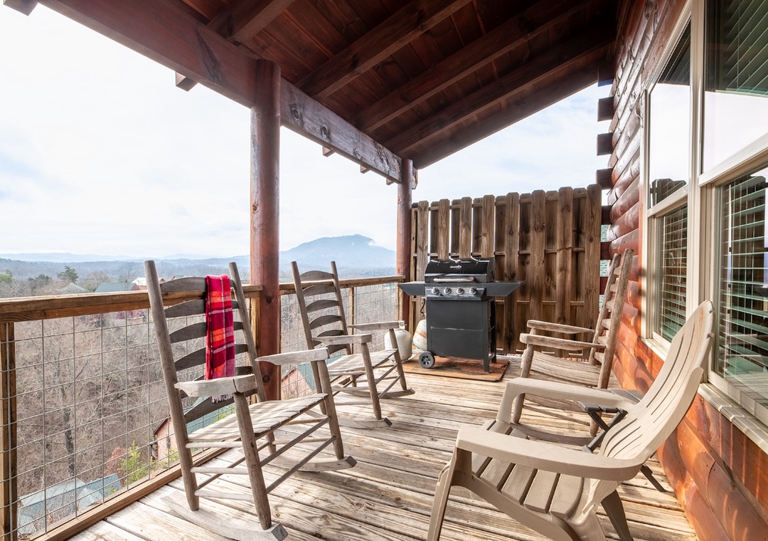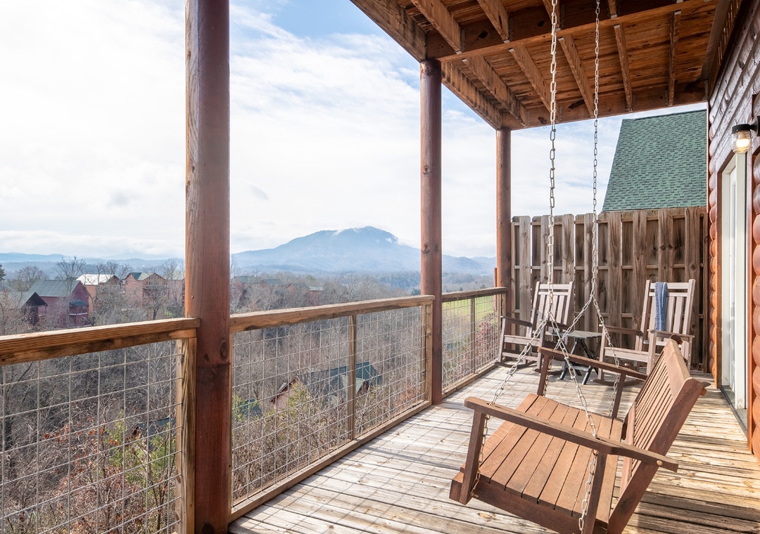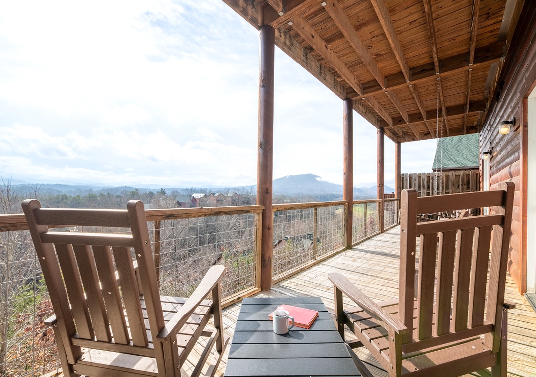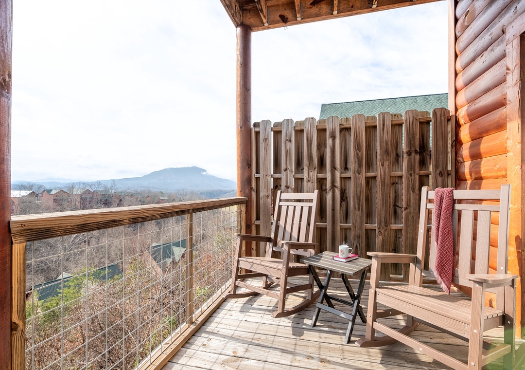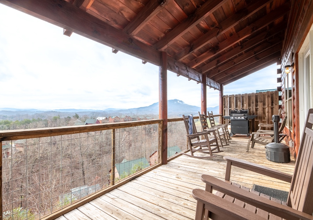 The rear outdoor decks overlook the gorgeous surrounding mountains and some attractions in Pigeon Forge and Gatlinburg. On a quiet day, you can even hear the noise of the train at Dollywood.