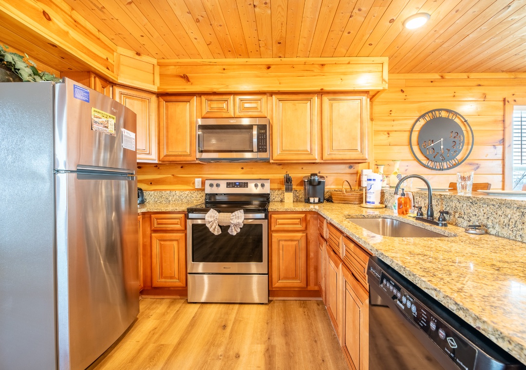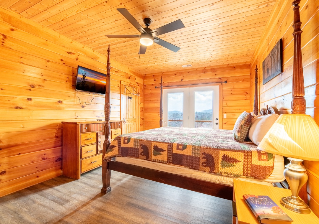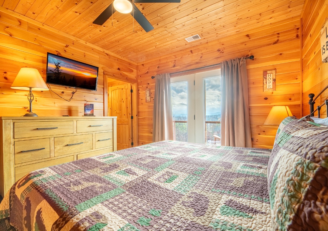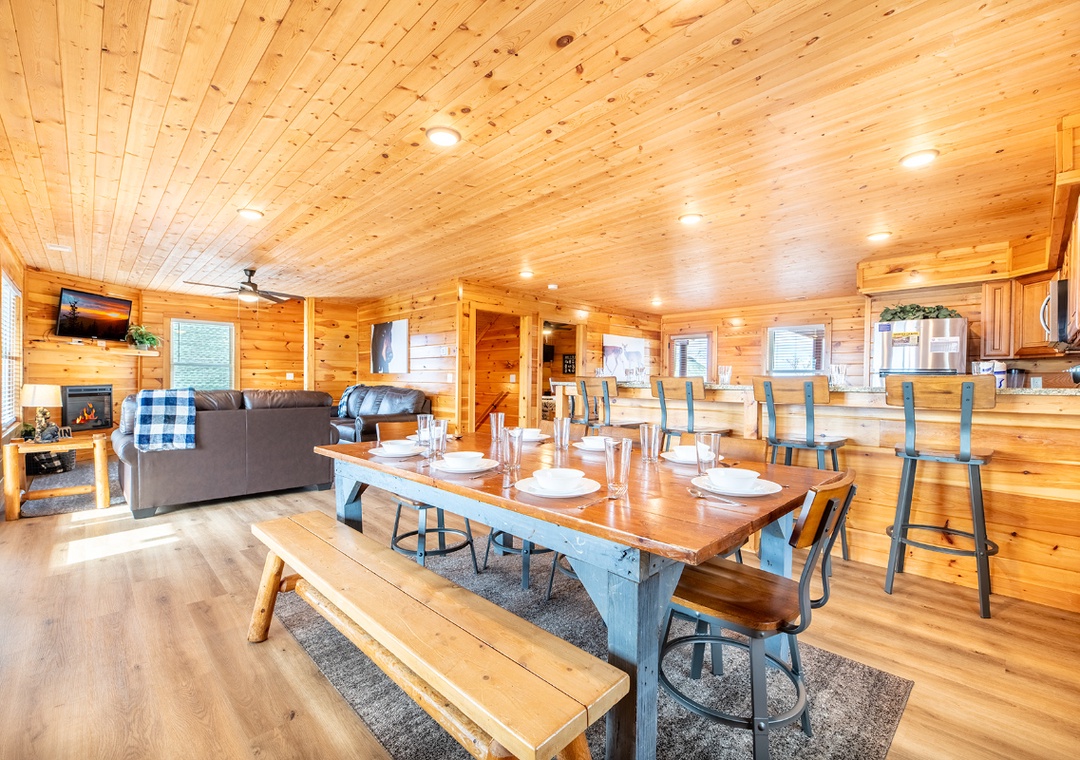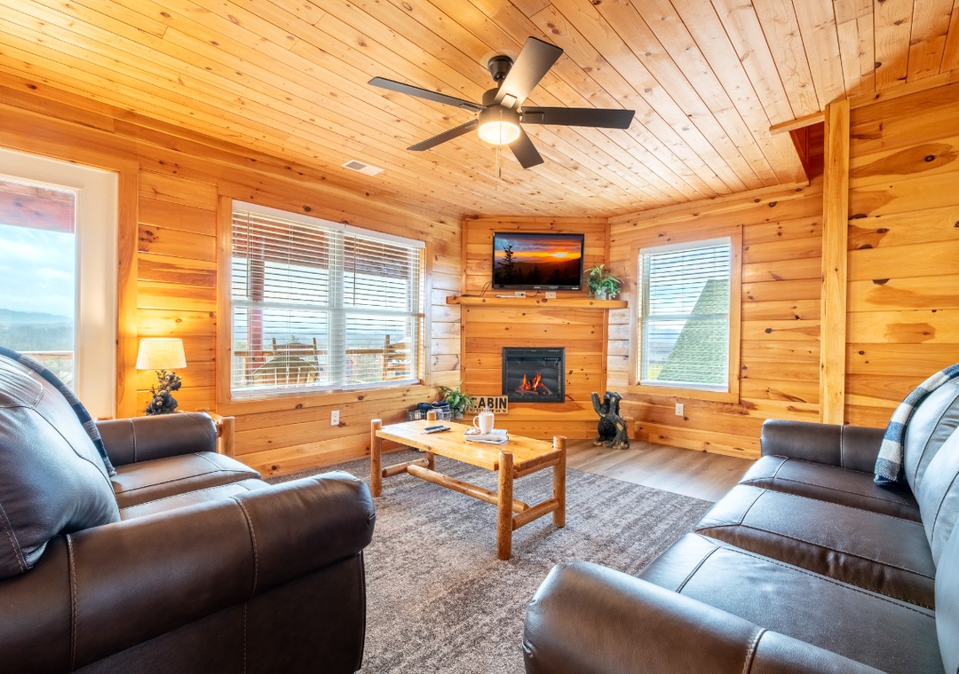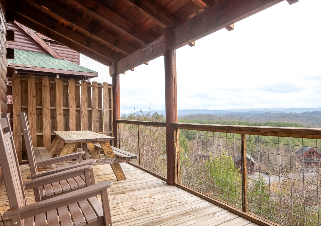 The rear outdoor decks overlook the gorgeous surrounding mountains and some attractions in Pigeon Forge and Gatlinburg. On a quiet day, you can even hear the noise of the train at Dollywood.