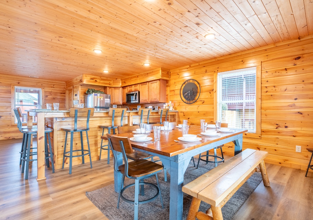 It's "Time to Unwind" and let go of your stresses here at our amazing pool cabin (sleeps 12). Relax and enjoy that fun together time you've been missing out on lately at our modern cabin located just outside of Pigeon Forge. With its prime location, you get to enjoy the amazing views AND easy access to the area entertainment.