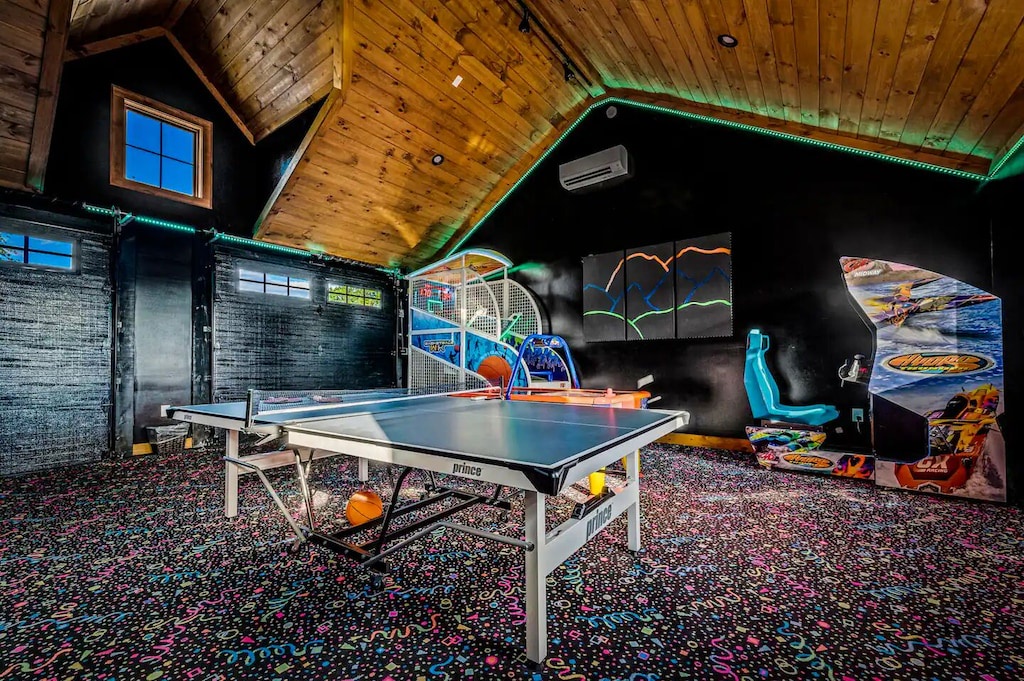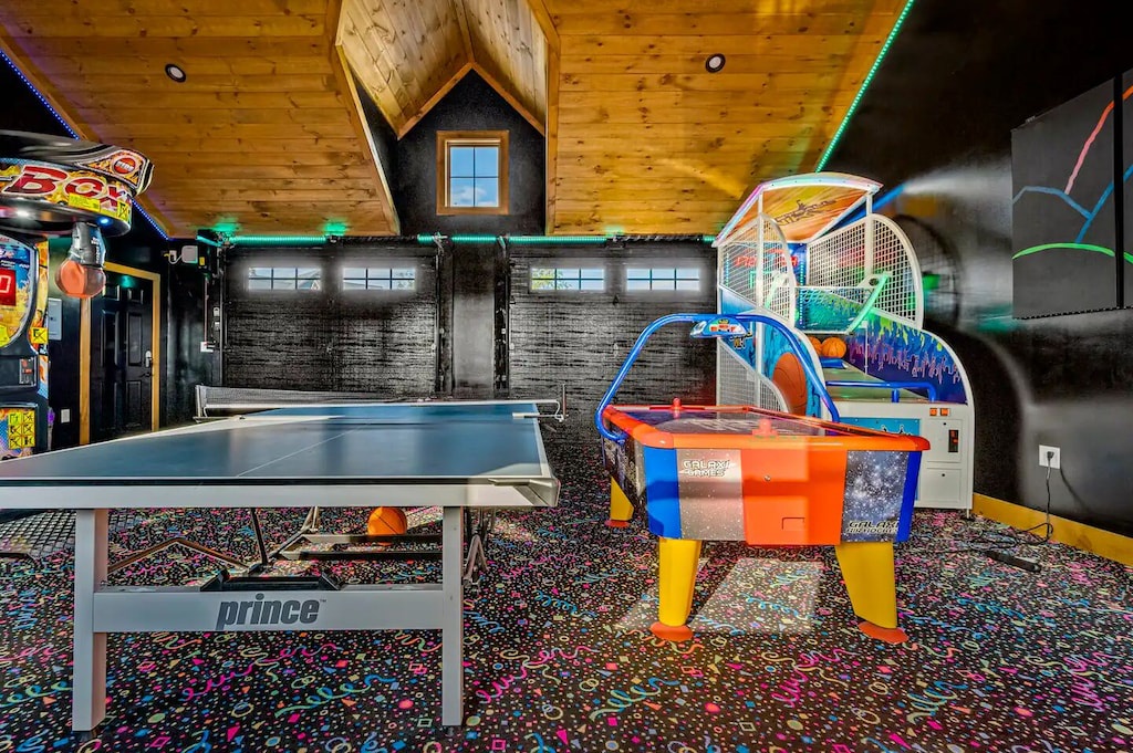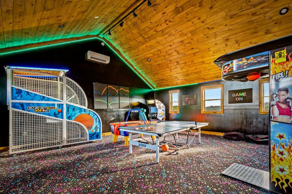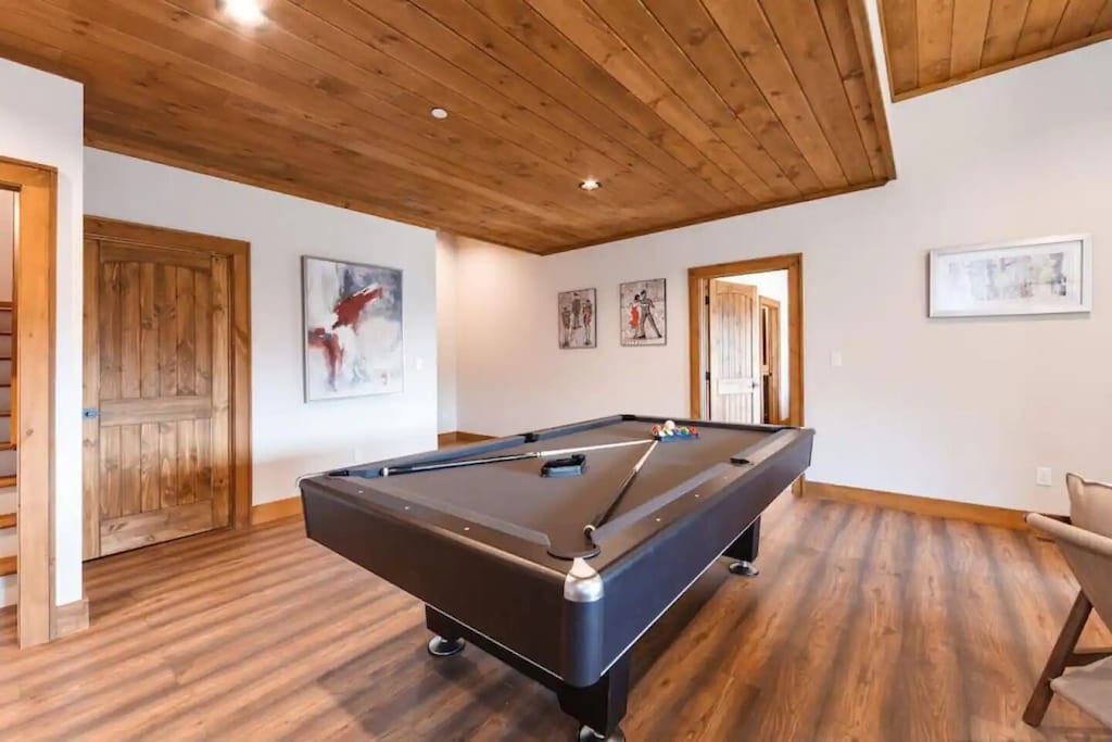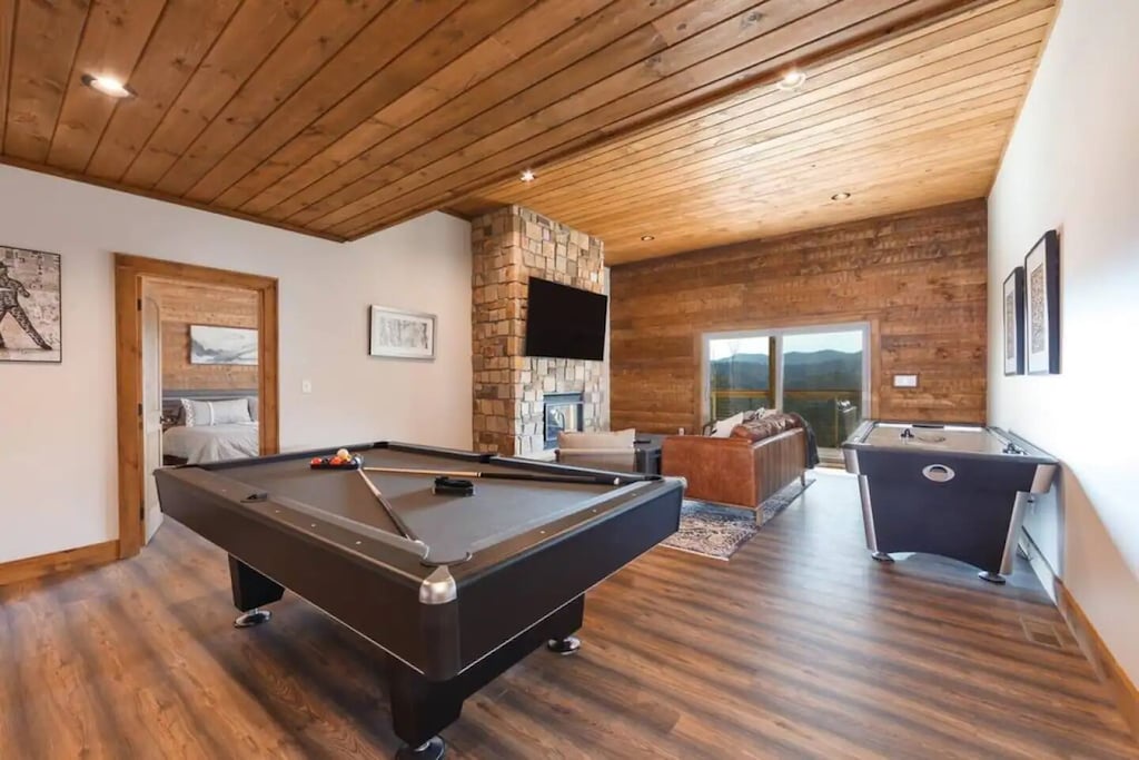 ✔ Huge Game Room (pool table, air hockey, foosball, ping pong table, fireplace, big screen TV)