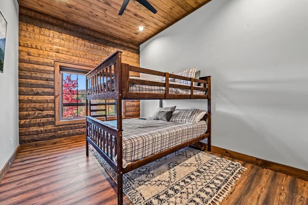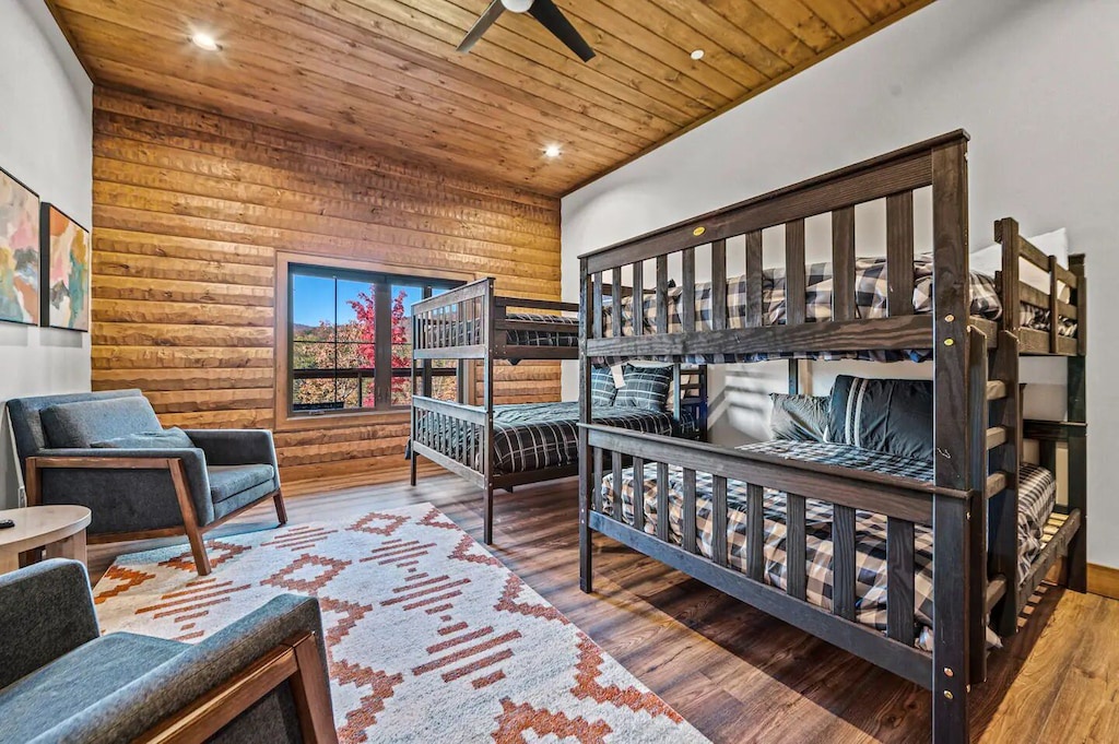 ✔ Bedroom #6 (lower level): Large bedroom with 2 sets of Queen-over-Queen bunk beds, flat screen TV, and access to hallway bath