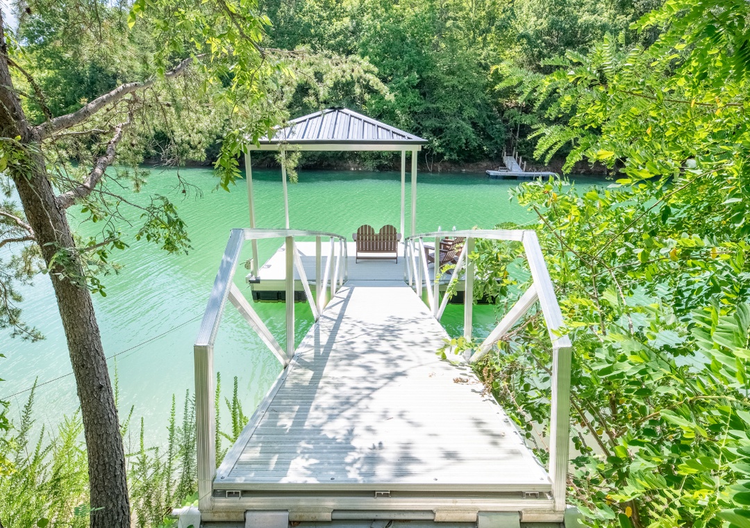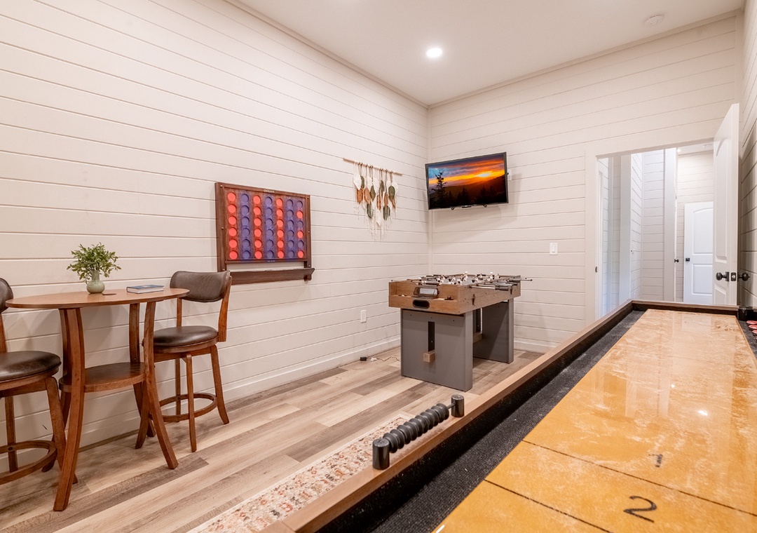 Start your vacation fun in the living room which features a plush seating area, a warm electric fireplace, and a 55" TV ideal for movie nights, sports games, or streaming your favorite series. Head upstairs and challenge your friends or family to a game of shuffleboard. It's a great way to spend time together, laugh, and stir up a little friendly rivalry. Downstairs, kids and teens will fall in love with the bunk room, where a multi-game table offers ping pong, foosball, and air hockey all in one place. This space becomes an instant hangout zone where hours can fly by in the best way possible. On the lower level, the private indoor heated pool ensures that no matter the time of year or the forecast, the fun doesn’t have to stop. Just steps from the pool, the lower-level deck houses a bubbling hot tub, perfect for winding down after an energetic day of games or mountain adventures. Outside, the expansive deck boasts comfortable seating, beautiful lake views, and the sounds of nature setting the mood. If you’re looking for more action, take the fun down to the private dock on the lake. It’s a fantastic spot for fishing, swimming, or launching kayaks, with direct lake access that puts outdoor fun right at your doorstep. And because “Tranquility Awaits” is pet-friendly, your furry family members don’t have to stay behind. With plenty of space to explore and a calming environment all around, pets are sure to enjoy the retreat as much as their humans.