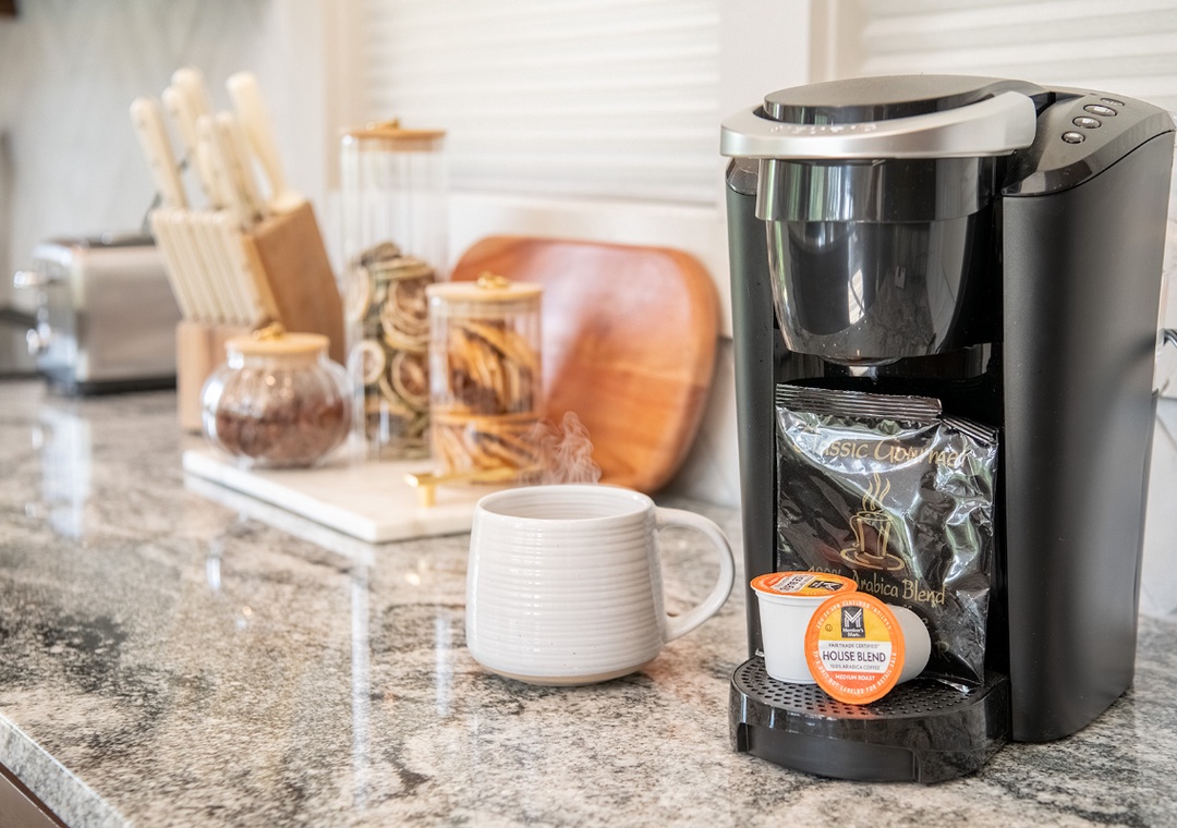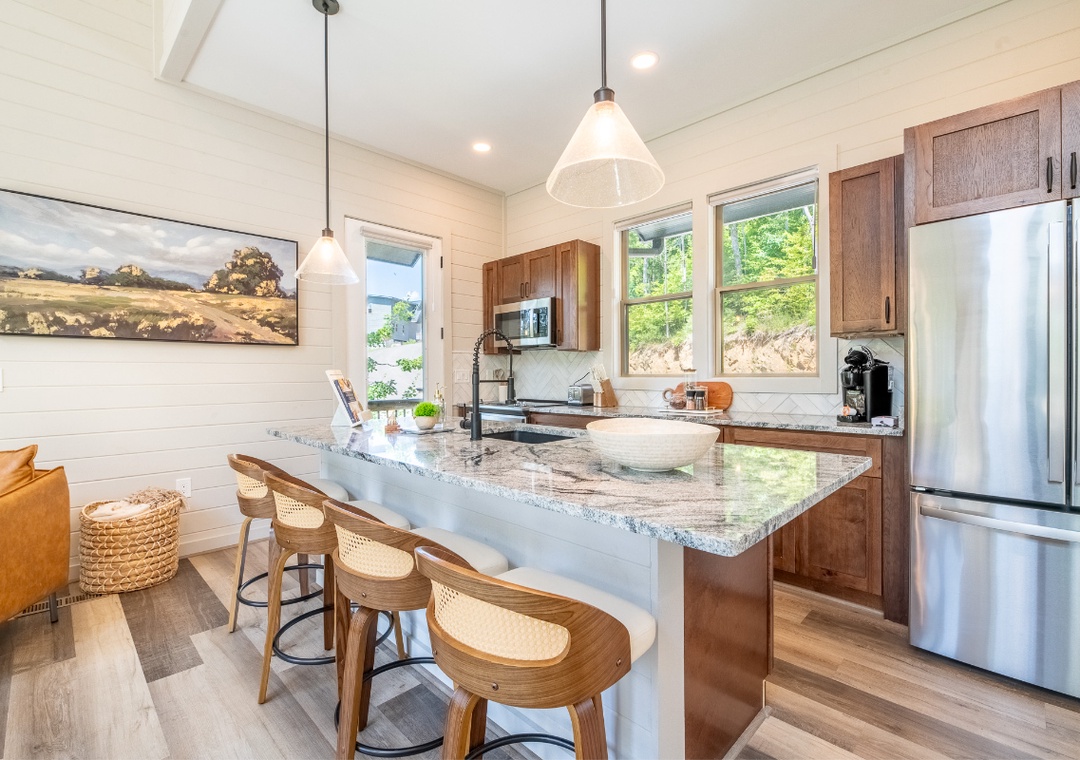 The fully-equipped kitchen boasts modern amenities, making it easy to prepare delicious meals for your family. Well-appointed with a full-sized refrigerator, dishwasher, stove, microwave, and other kitchen appliances perfect for making breakfast, lunch, or dinner throughout your stay! All pots, pans, glasses, plates, silverware, etc., are also there for you! Gather around the inviting dining table or the nearby breakfast bar to share stories and laughter, as it invites you to savor each bite while taking in the natural beauty of the surroundings.