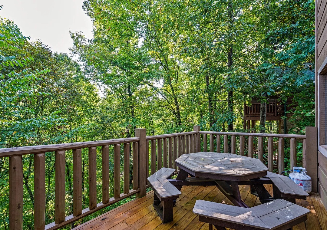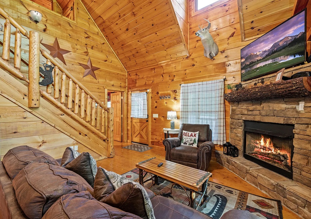 Welcome to "TreeTop Lodge," where mountain charm meets modern comfort. Perfectly situated between Gatlinburg and Pigeon Forge, this cabin offers the best of both worlds: quiet seclusion among the trees and convenient access to top attractions, shopping, dining, and outdoor adventures. Whether you’re here for a romantic getaway, a family vacation, or a friends’ retreat, TreeTop Lodge promises relaxation, fun, and that authentic Smoky Mountain charm.