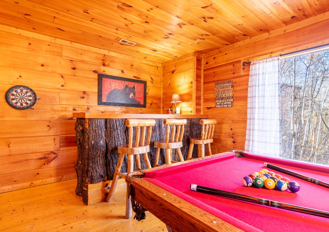 TreeTop Lodge is designed for relaxation and fun, offering several entertainment amenities. The Main Level Sitting Area features a cozy gas fireplace and a flatscreen TV, while the Lower Level Sitting Area offers another comfortable space with an electric fireplace and a flatscreen TV, both perfect for catching up on your favorite movies and series. The game room provides opportunities to challenge friends to a game of pool, play classics on the arcade machine, or enjoy a round of darts on the dartboard. For ultimate relaxation, the outdoor hot tub is located on the lower deck, providing a private and soothing soak beneath the stars, perfect for unwinding after a day in the Smokies. You can also enjoy the peaceful sounds of nature and serene wooded views from the two decks, ideal for a morning coffee or an evening drink.