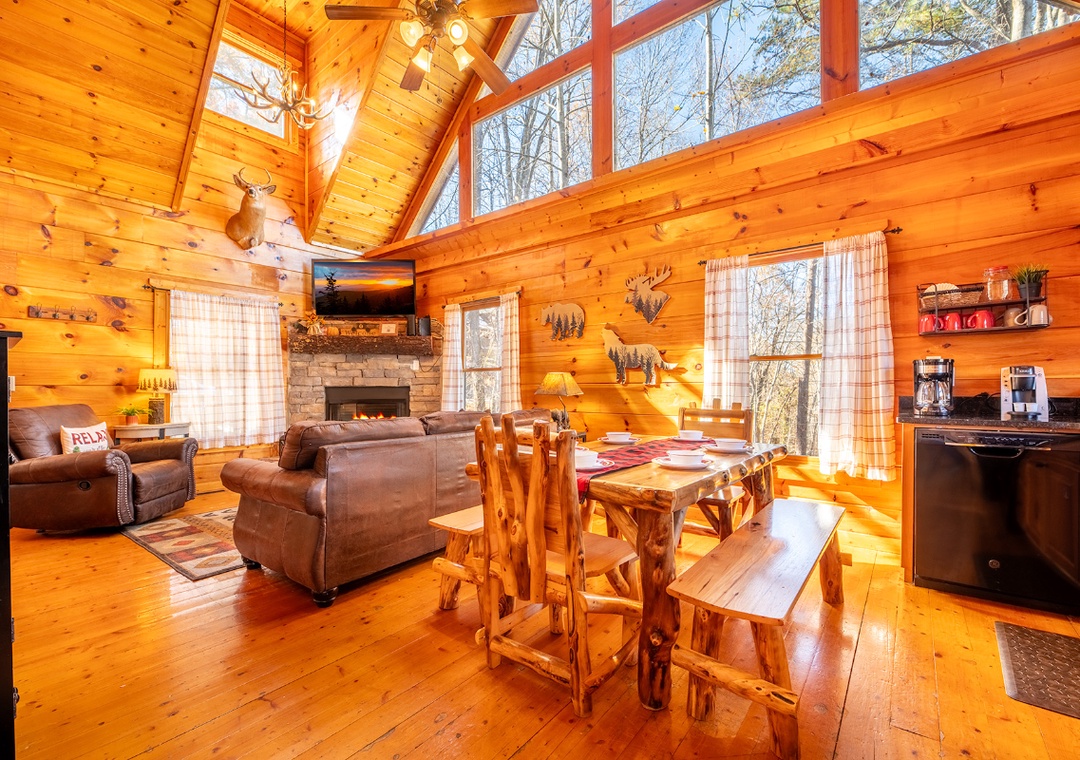 From the moment you arrive, you’ll be enchanted by TreeTop Lodge’s warm wood interior, high vaulted ceilings, and stunning natural surroundings. Our floorplan is ideal for families and small groups alike and is the perfect get-a-way. So pack your bags because the mountains are calling.