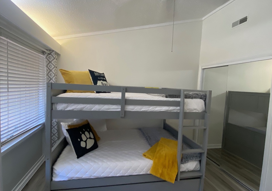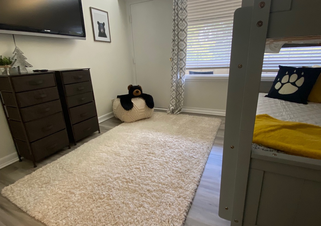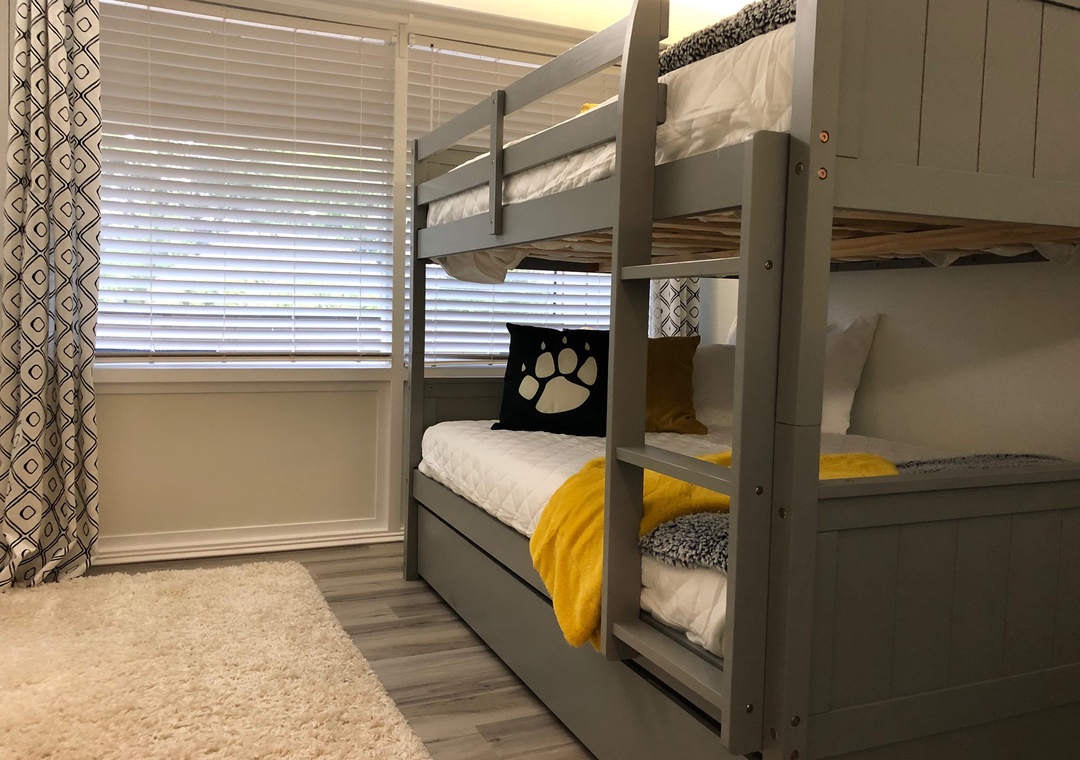 ✔ Bedroom #2 (Upper Level): Spacious bedroom with a Queen-over-queen Bunk Bed with a Twin Trundle and a Flat-screen TV