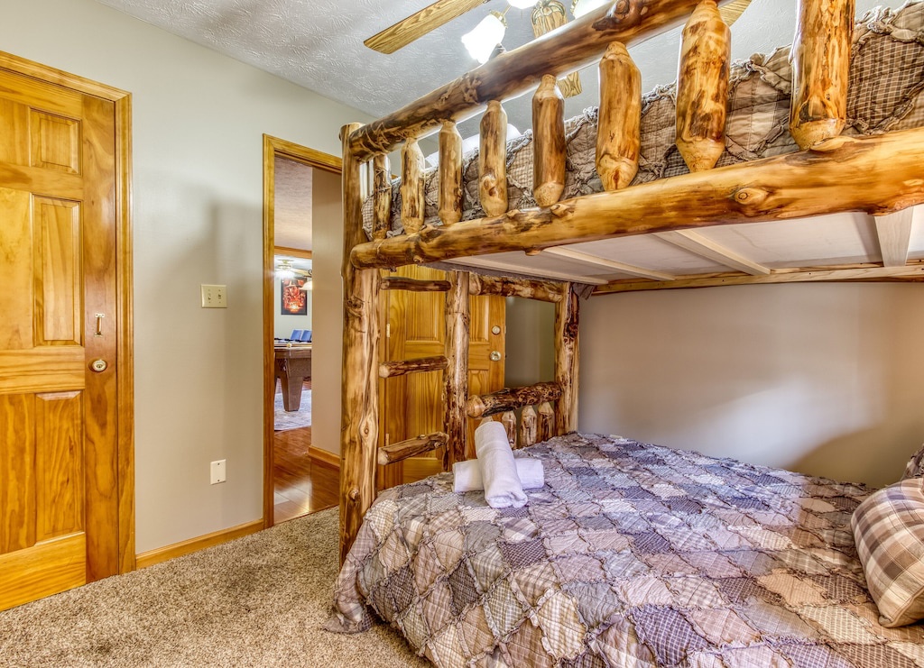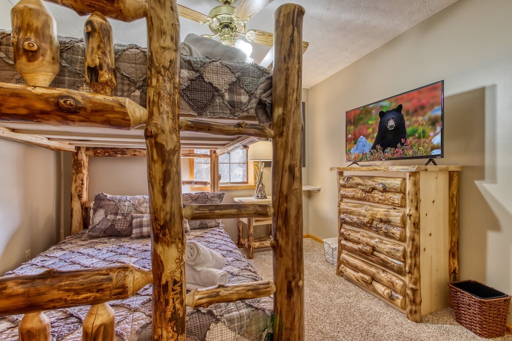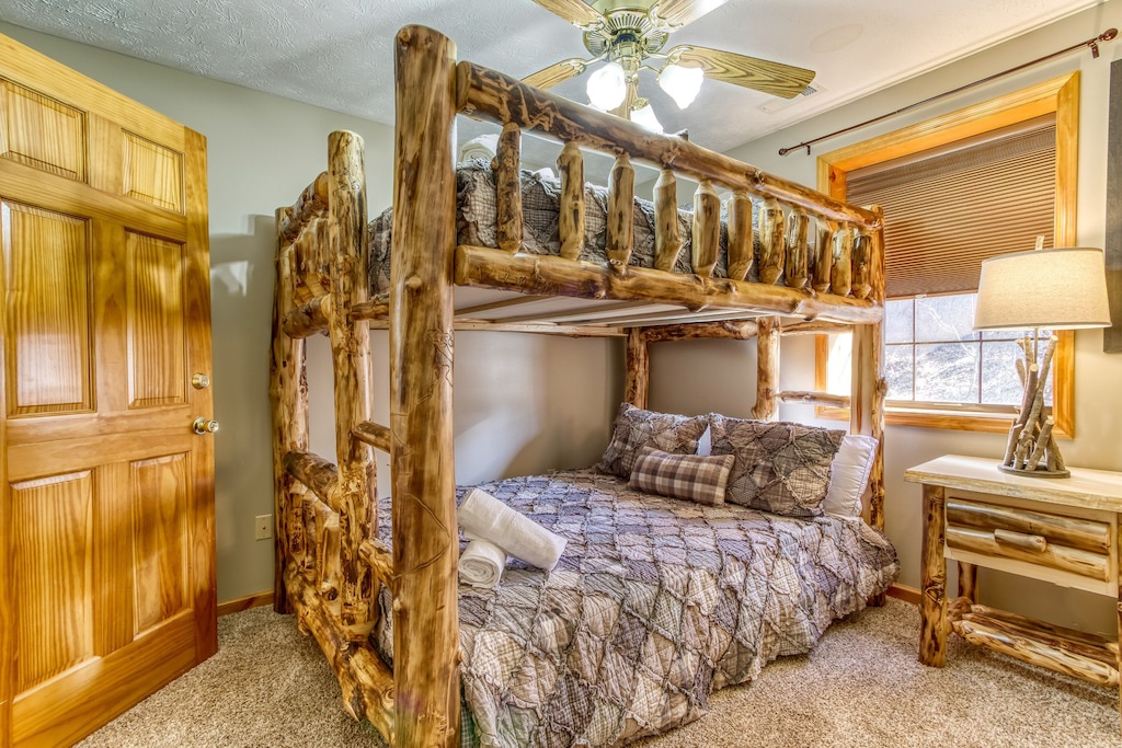 A set of queen bunk beds lets the kids have their own space and enjoy their cabin experience too.