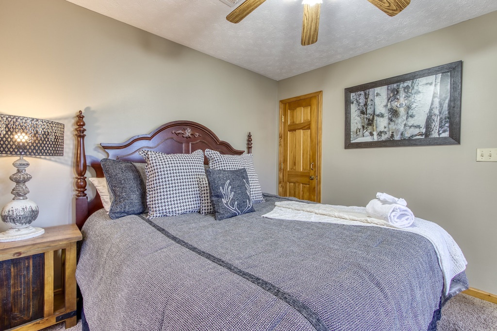 There are more than enough bedrooms to relax in after an exciting day of adventuring throughout lovely mountain surroundings. One King bedroom is on the main floor, while the other two are on the lower level. There is also a queen over queen bunk bed.