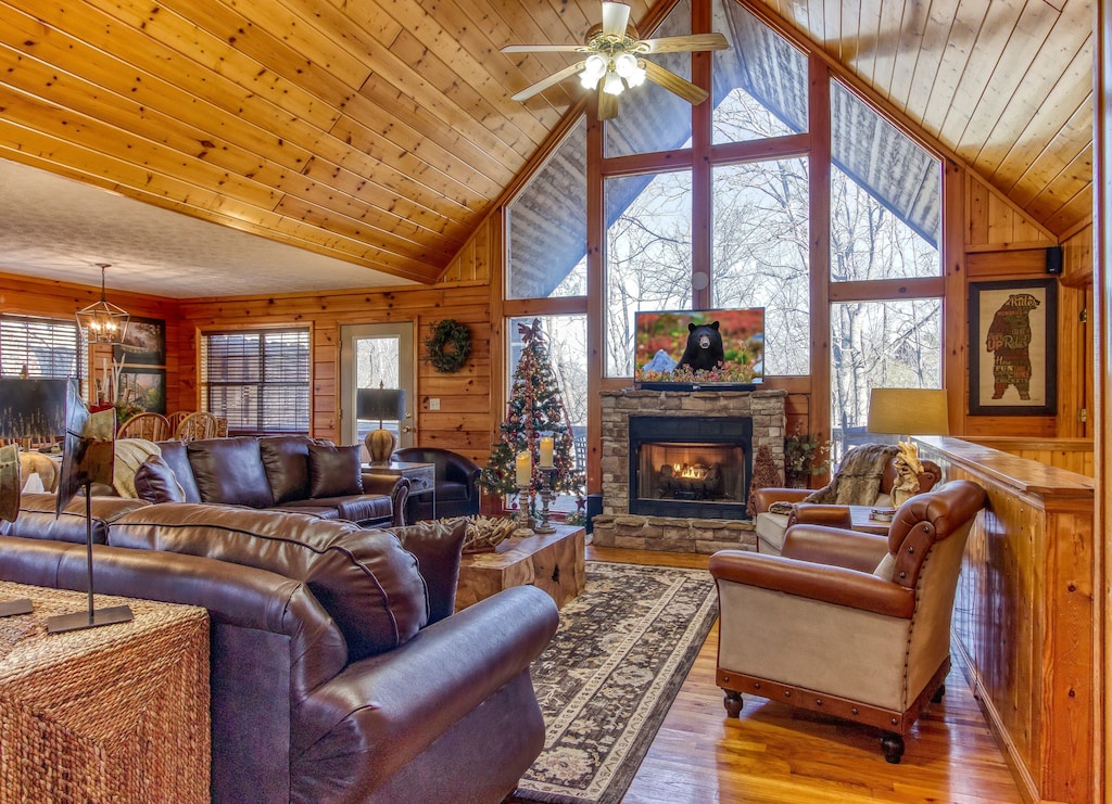 The cabin is beautiful and the decor is absolutely perfect for a log cabin! My woodworking son was amazed at the special pieces. There’s lots to do from the theater/game room to the hot tub and indoor pool. And it’s 5 minutes to Dollywood!- Reviewed On: 7/2/2023