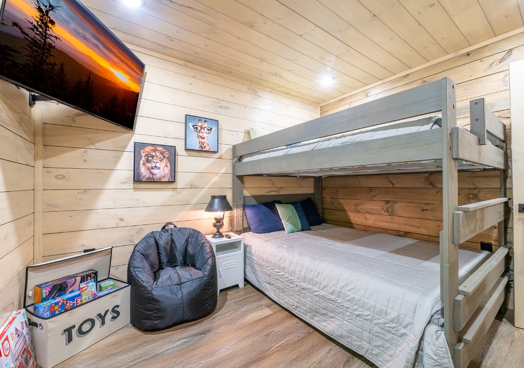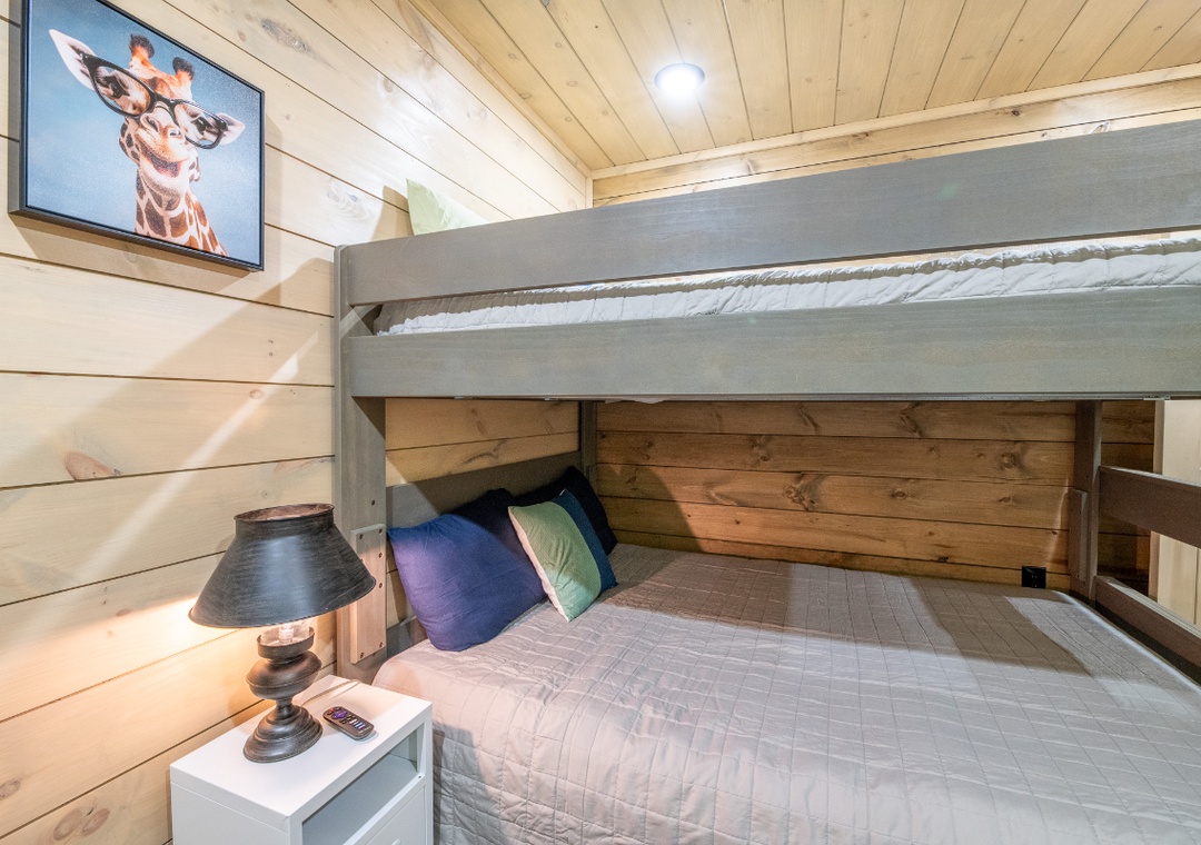 ✔ Bedroom #4 (Third Level): Inviting Bedroom with a Queen-over-Queen Bunk Bed and a Flat-screen TV; Access to a Full Bathroom with Stand Up Shower