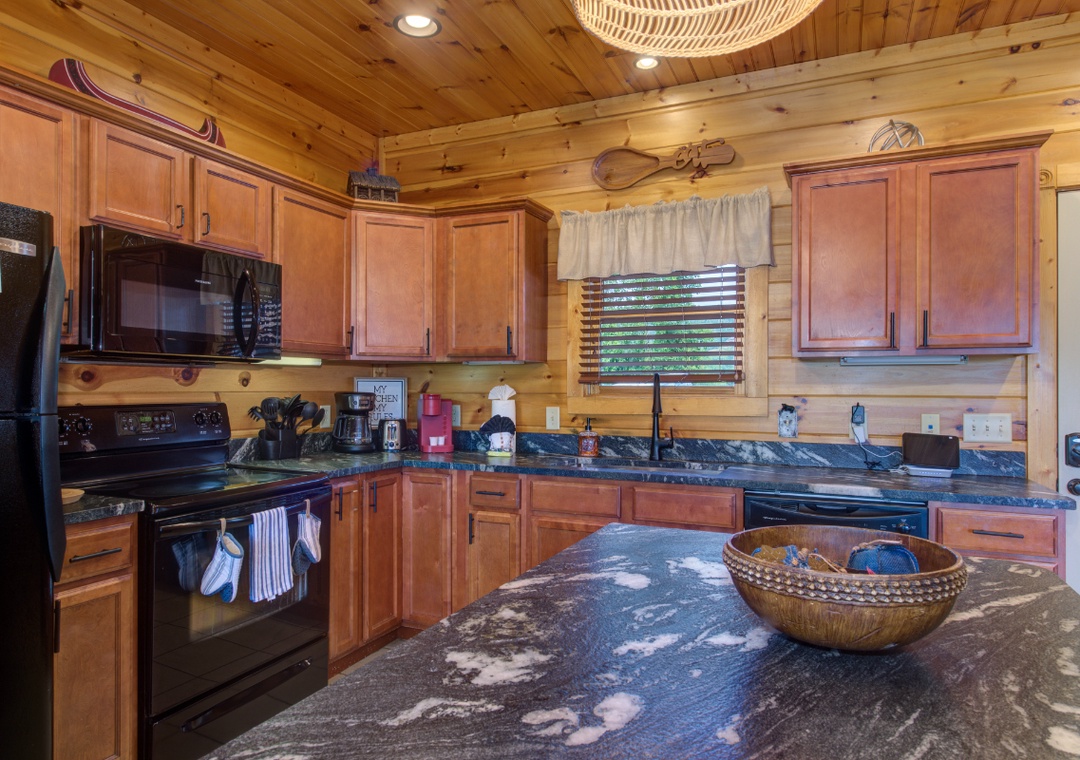 The gourmet kitchen boasts modern amenities making it easy to prepare delicious meals for your family or friends. Well-appointed with a full-sized refrigerator, dishwasher, stove, microwave, and other kitchen appliances perfect for making breakfast, lunch, or dinner throughout your stay! All pots, pans, glasses, plates, silverware, etc. are also there for you! Gather around the inviting dining table or the breakfast bar to share stories and laughter as it invites you to savor each bite while taking in the natural beauty of the surroundings.