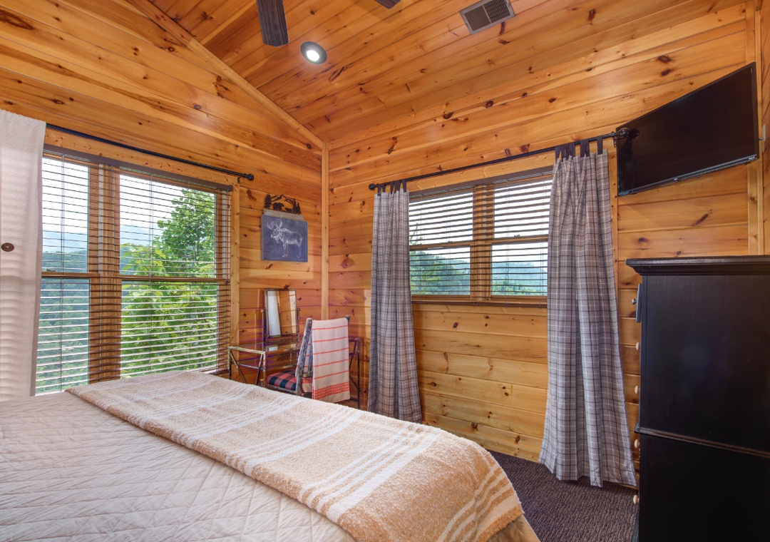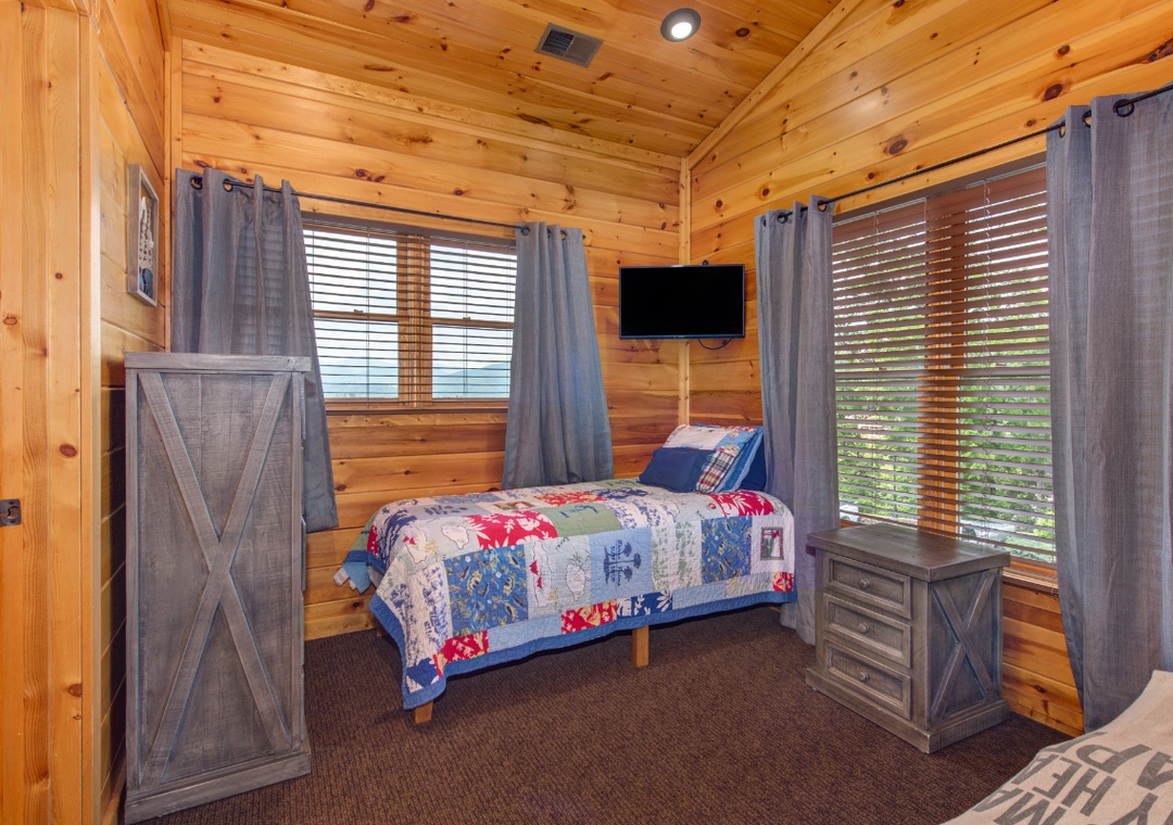 ✔ Bedroom #1 (Upper Level): Spacious Bedroom with a King-sized Bed, Twin Bed and a Full-screen TV; Attached Full Bathroom with Shower/Tub Combo