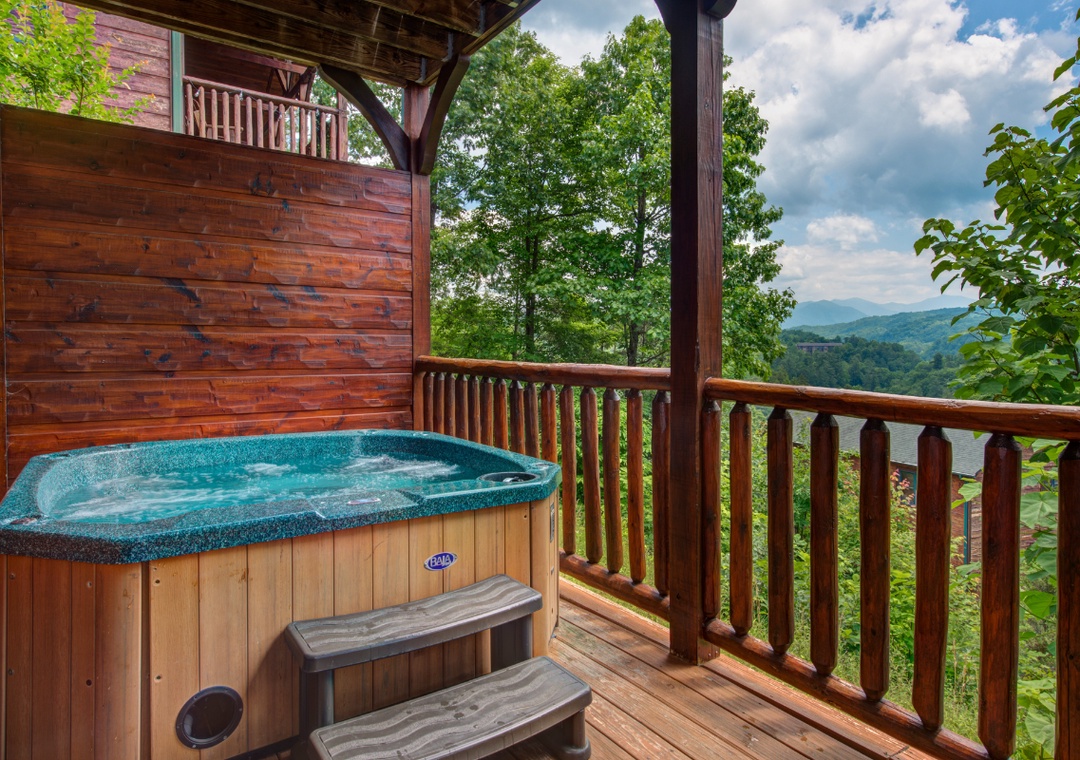 Our cabin is packed with activities designed to cater to both kids and adults, ensuring that every moment spent indoors is just as fun and exciting as exploring the beauty of the Smokies. Start with the Game Room that features a variety of games to keep everyone engaged for hours. Whether you're challenging your friends to a fast-paced air hockey match or showing off your skills at the arcades and pool table, there's always something to do. Just across from the game room, you’ll find the theater room. Equipped with a 65" Samsung Smart TV and DVD player, it’s perfect for movie nights or binge-watching your favorite shows. When it's time to unwind and take in the beauty of the outdoors, the hot tub on the downstairs back deck offers the perfect spot for relaxation. Imagine soaking in the warm, bubbling water while overlooking the stunning Smoky Mountain landscape. And the fun doesn’t stop inside the cabin. As our guest, you’ll also have access to the resort's seasonal community pool (open from Memorial Day to Labor Day, 9am-9pm), where you can swim, lounge, and enjoy the sunshine.