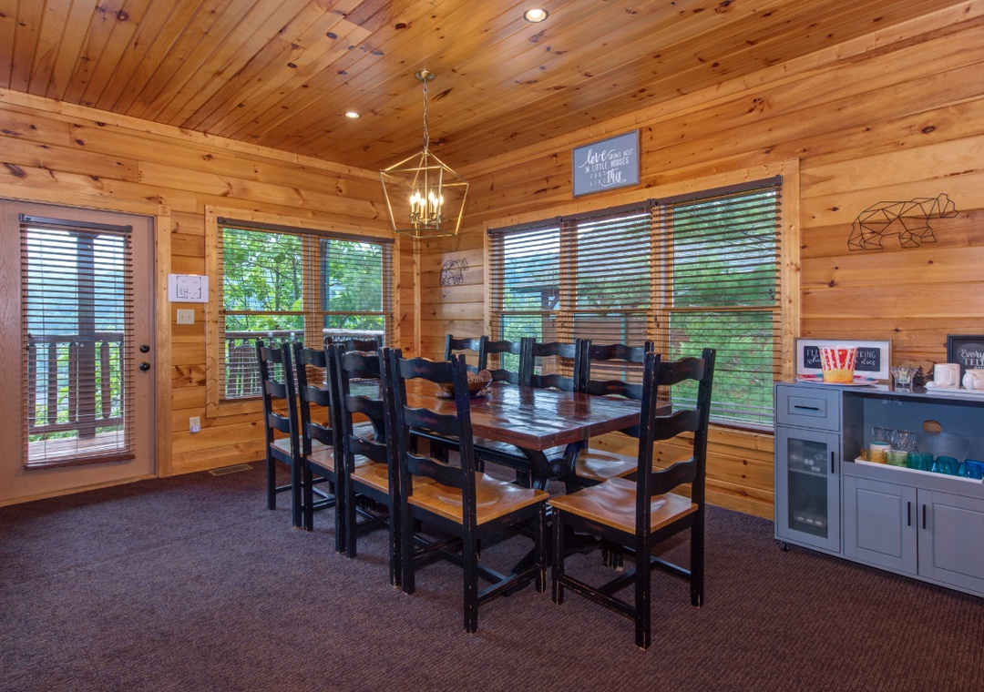 This cabin was a GREAT location for our family. Our only regret was that we didn't have time to stay longer. It was easy to find and close to hiking and to town. The game room got LOTS of use by our family. We brought our 7 kids, ages 9 to 23, plus our son's fiancée. EVERYONE had a great time. The movie room, hot tub, and pool were fun additions. It was an easy kitchen to cook in because it was well-stocked with the necessary utensils and dishes. There were enough chairs that all 10 of us could sit around the table together for meals. Three full bathrooms (plus 2 half-baths) made it easy for everyone to get ready quickly. Ceiling fans throughout the cabin made it very comfortable. Lots of blankets in case someone got chilly. The BONUS was that we got to see a Mama bear and her 3 cubs a couple of times right outside the cabin! So exciting for all of us! Everything was pristine. The views were beautiful from every angle. The upper deck was great to watch the sunrise. I hope we go back!- Reviewed On: 6/18/2025