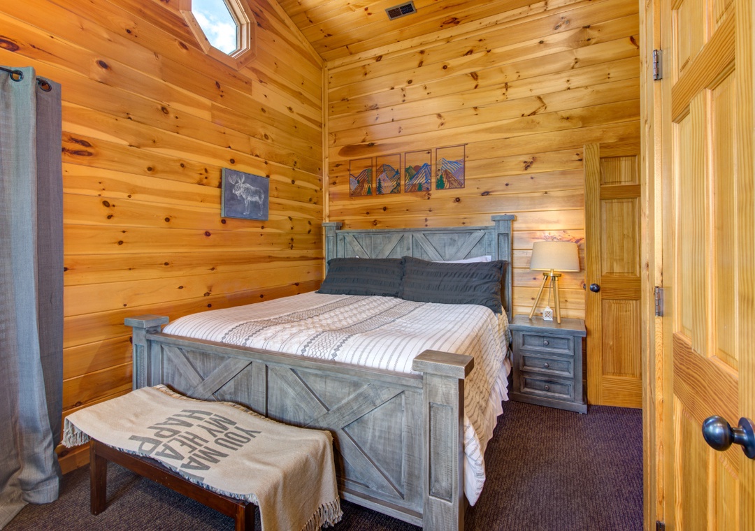 ✔ Bedroom #2 (Upper Level): Comfy Bedroom with a King-sized Bed and a Full-screen TV; Attached Full Bathroom with Shower/Tub Combo