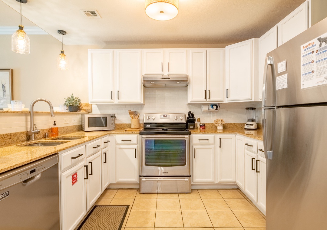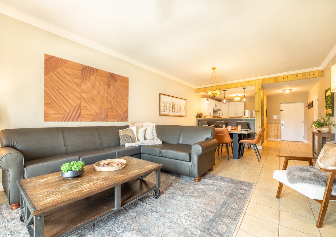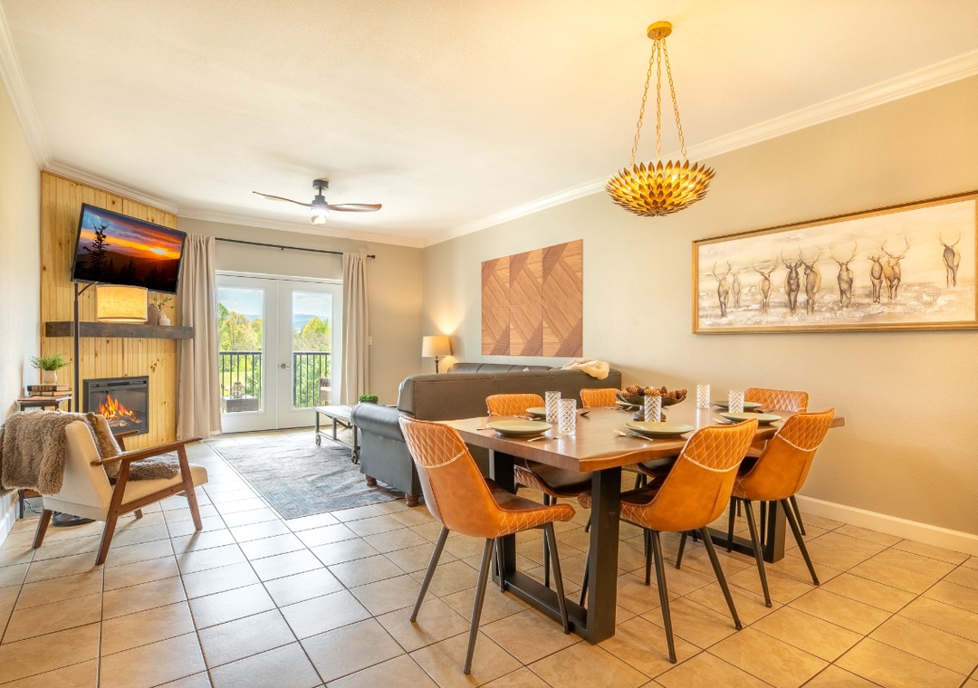The heart of the home is the living room, where you can settle in after a day of exploring and truly unwind. An electric fireplace and a Google TV add a gentle glow and a touch of mountain charm, making it the perfect spot to curl up with a book or enjoy quiet evenings together. The open layout of the condo allows the living area to transition naturally into the dining and kitchen spaces, creating a welcoming environment for shared meals, conversation, and laughter. Whether you’re preparing a full dinner or enjoying takeout from a local favorite, the layout keeps everyone part of the moment. Convenience is woven into every part of your stay, including easy elevator access that makes arriving, departing, and moving throughout the building simple and stress-free. Free WiFi is also available throughout the unit.